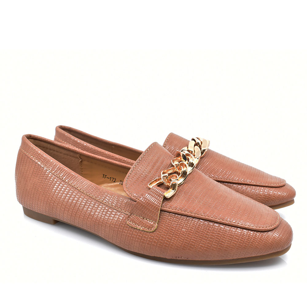 Γυναικεία μοκασίνια κατασκευασμένα από συνθετικό υλικό με μαλακό εσωτερικό πάτο για άνετο βάδισμα και διακοσμητική λεπτομέρεια στο επάνω μέρος για να απογειώσουν τις πιο μοντέρνες σας εμφανίσεις. Είναι ιδανικά και κομψά να σας συνοδεύσουν στις καθημερινές δραστηριότητες.
