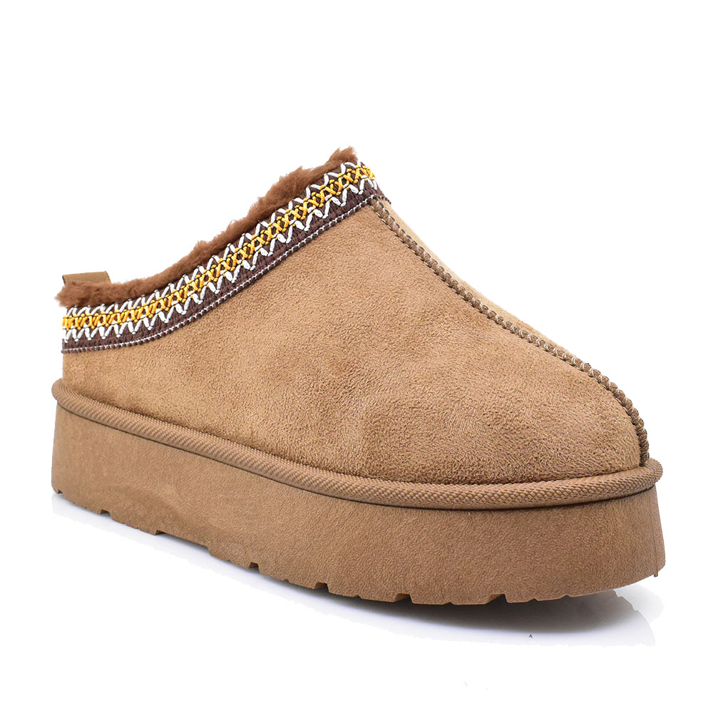 Γυναικεία μποτάκια της εταιρείας ENVIE κατακευασμένα από συνθετικό υλικό με επένδυση από συνθετική γούνα.