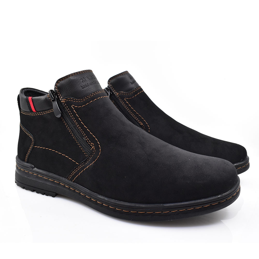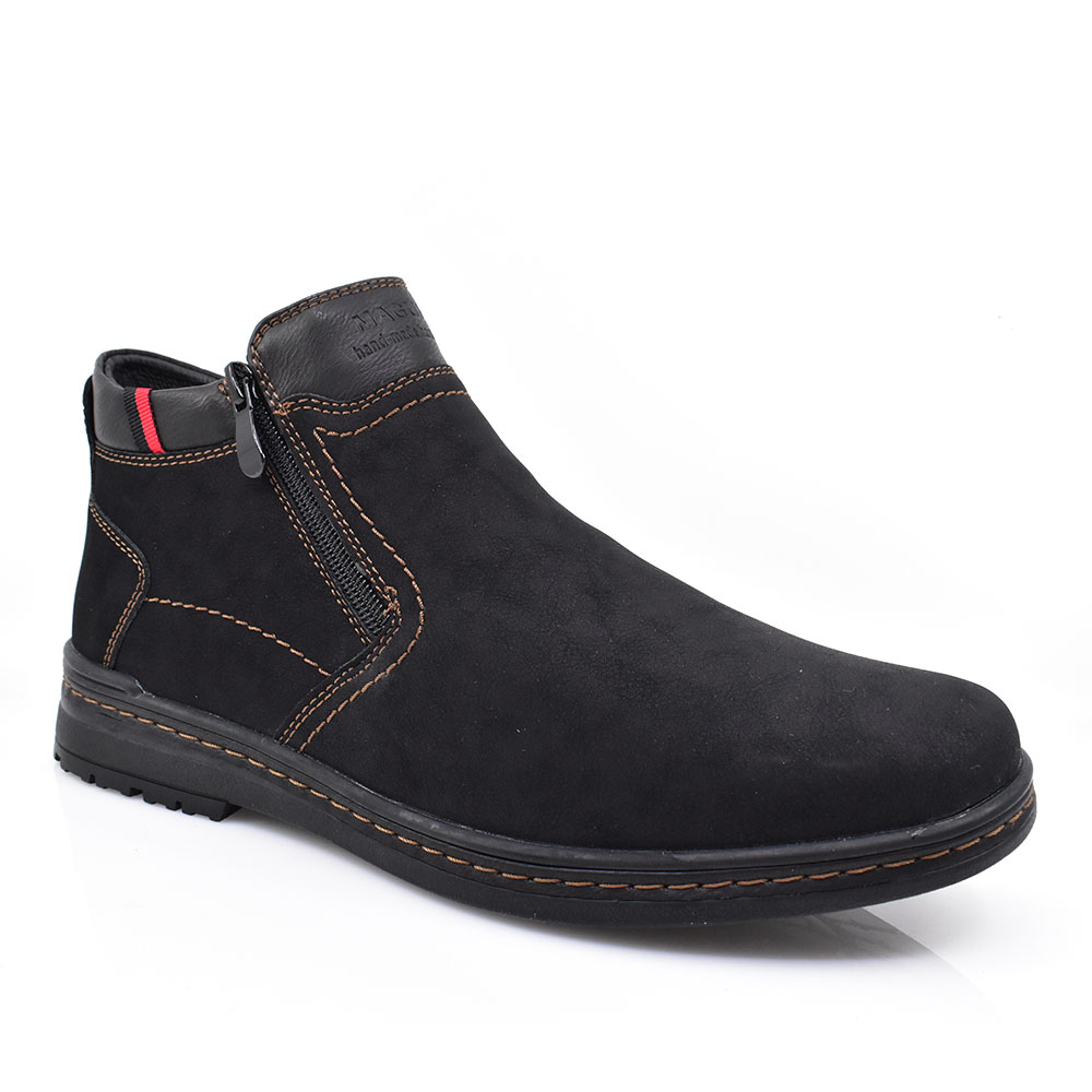 Ανδρικά μποτάκια με επένδυση από συνθετική γούνα. Διαθέτουν αντιολισθητική και αντικραδασμική σόλα για περισσότερη ασφάλεια και σιγουριά στα βήματα σας, με φερμουάρ στο πλάι για εύκολη και γρήγορη εφαρμογή.
