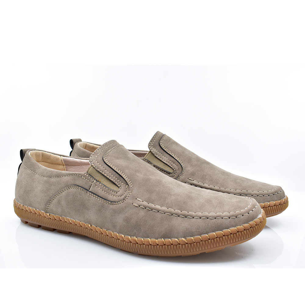 Ανδρικά μοκασίνια κατασκευασμένα από συνθετικό υλικό με εσωτερικό δερμάτινο πάτο για πιο άνετο βηματισμό. Είναι εξοπλισμένα με αντιολισθητική σόλα και διαθέτουν δύο λάστιχα στο επάνω μέρος για πιο εύκολη και γρήγορη εφαρμογή.