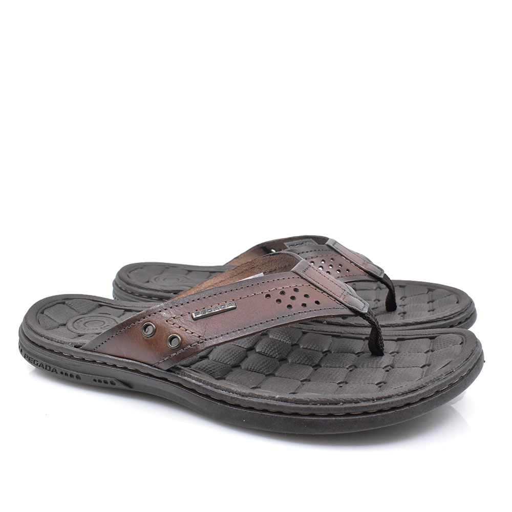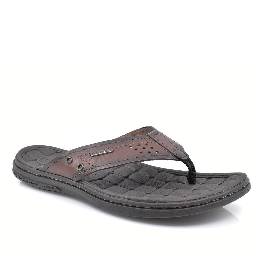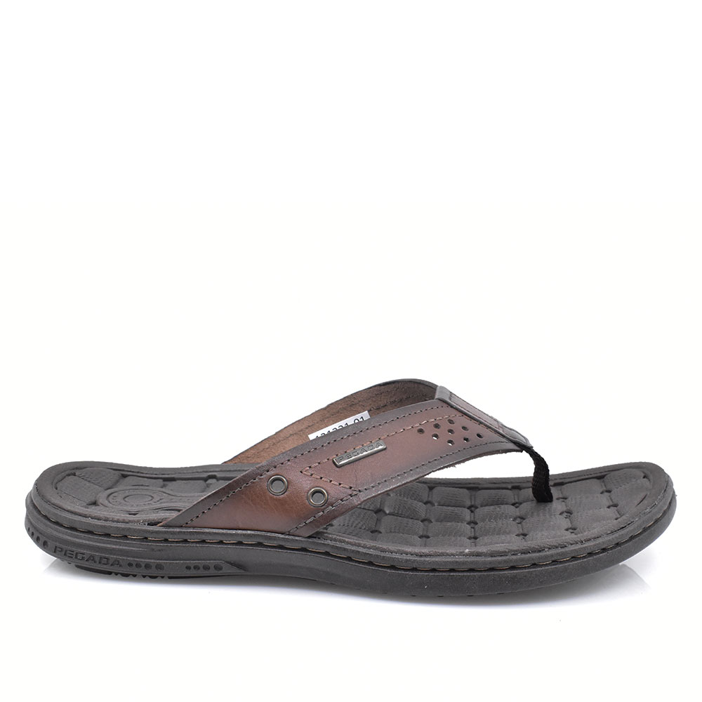 Ανδρικές παντόφλες της εταιρείας PEGADA κατασκευασμένες από δέρμα. Εξοπλισμένες με μαλακό ανατομικό πάτο για απόσβεση κραδασμών και άνετο βάδισμα. Ιδανικές για καθημερινή χρήση.