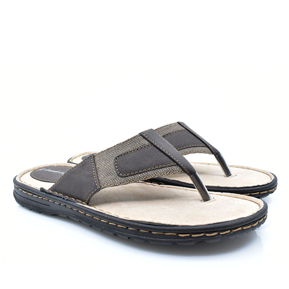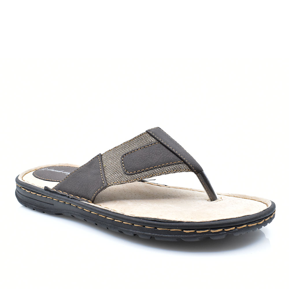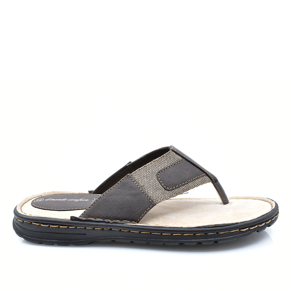 Ανδρικές παντόφλες της εταιρείας IL MONDO κατασκευασμένα από συνθετικό υλικό με δερμάτινο πατάκι για άνετο και ξεκούραστο βάδισμα και αντιολισθητική σόλα για περισσότερη ασφάλεια.