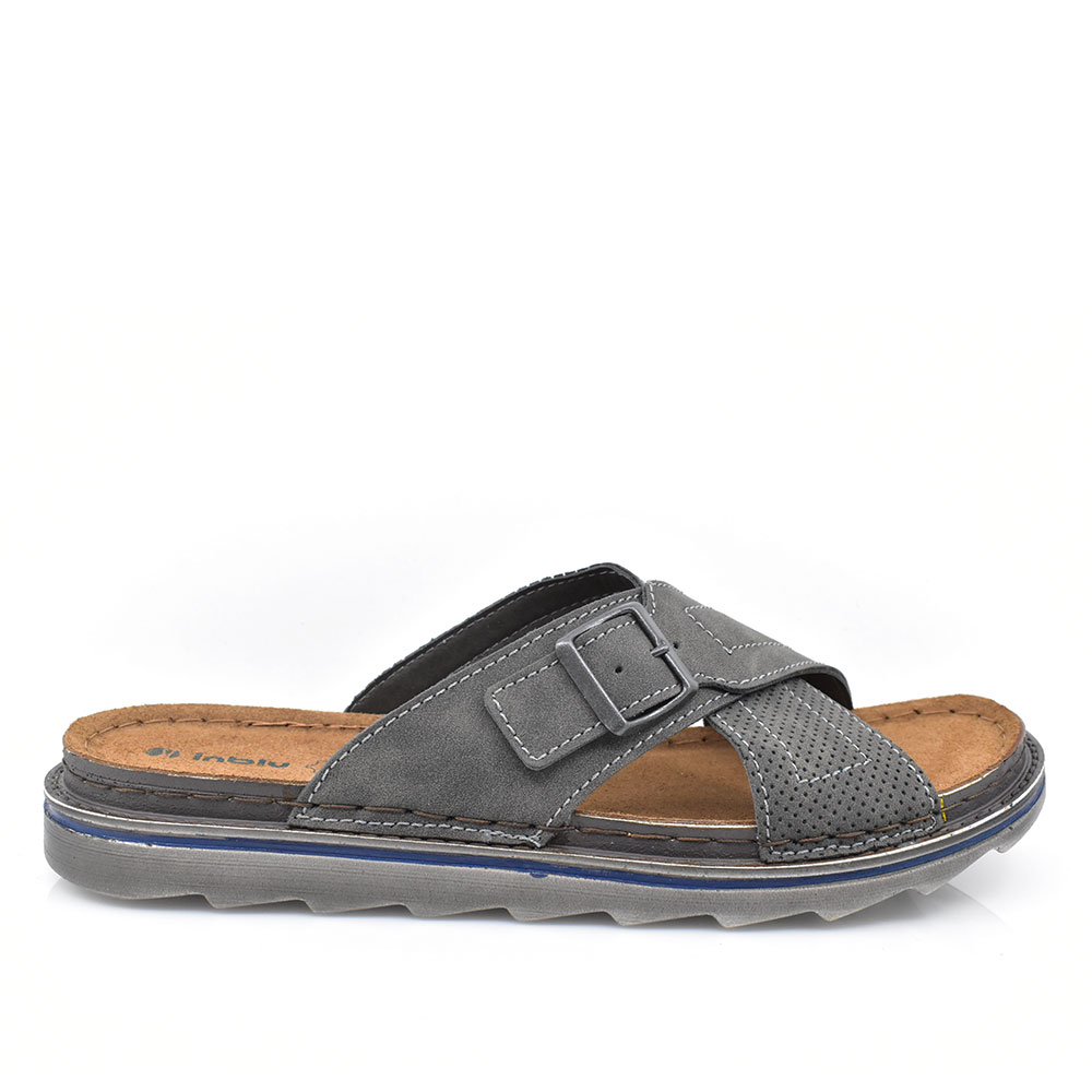 Ανδρικές καλοκαιρινές παντόφλες της εταιρείας INBLU κατασκευασμένες από συνθετικό υλικό με δερμάτινο ανατομικό πάτο για άνετο περπάτημα. Διαθέτουν αντιολισθητική σόλα για ασφάλεια όλες τις ώρες της ημέρας.