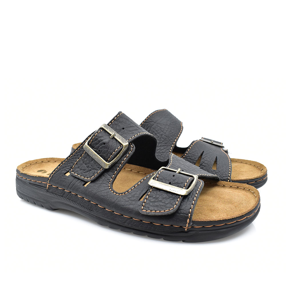 Ανδρικές καλοκαιρινές παντόφλες της εταιρείας INBLU κατασκευασμένες από συνθετικό υλικό με δερμάτινο ανατομικό πάτο για άνετο περπάτημα. Διαθέτουν αντιολισθητική σόλα για ασφάλεια όλες τις ώρες της ημέρας και κουμπώματα ντοκά που προσαρμόζονται στις ανάγκες σας.