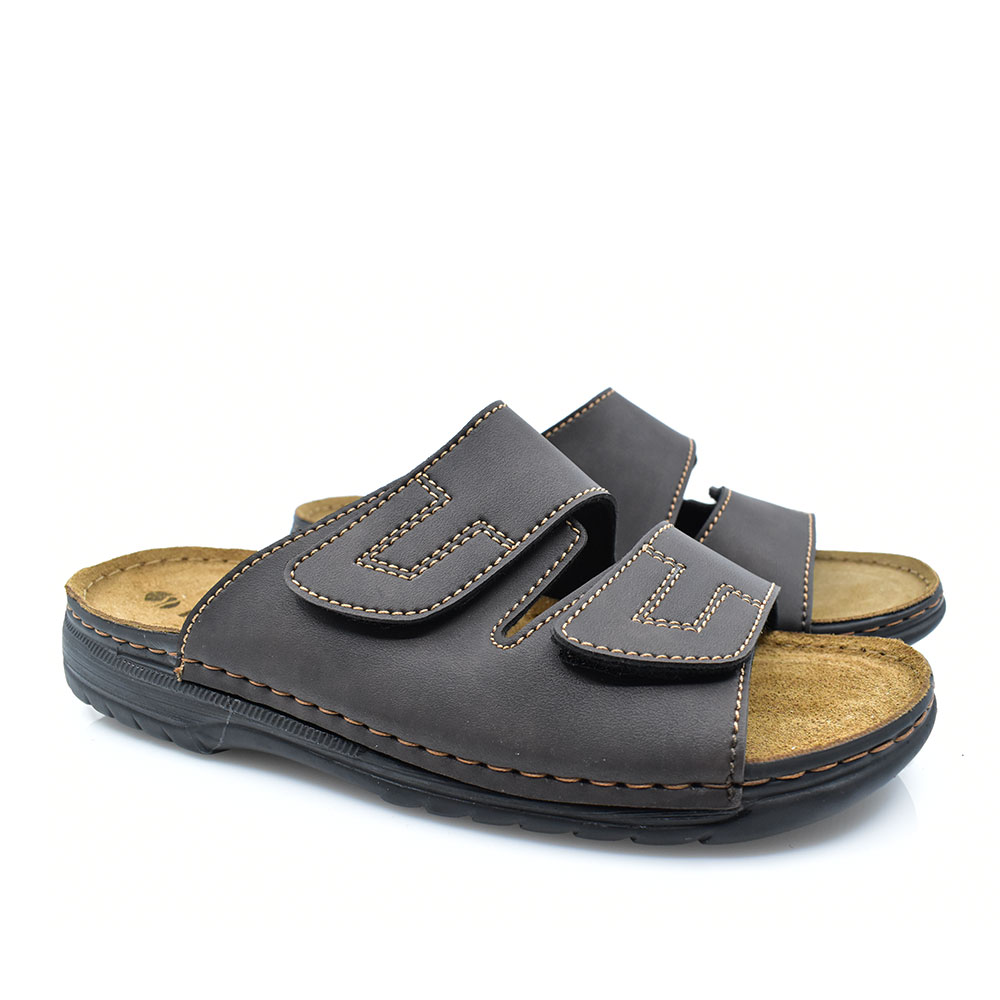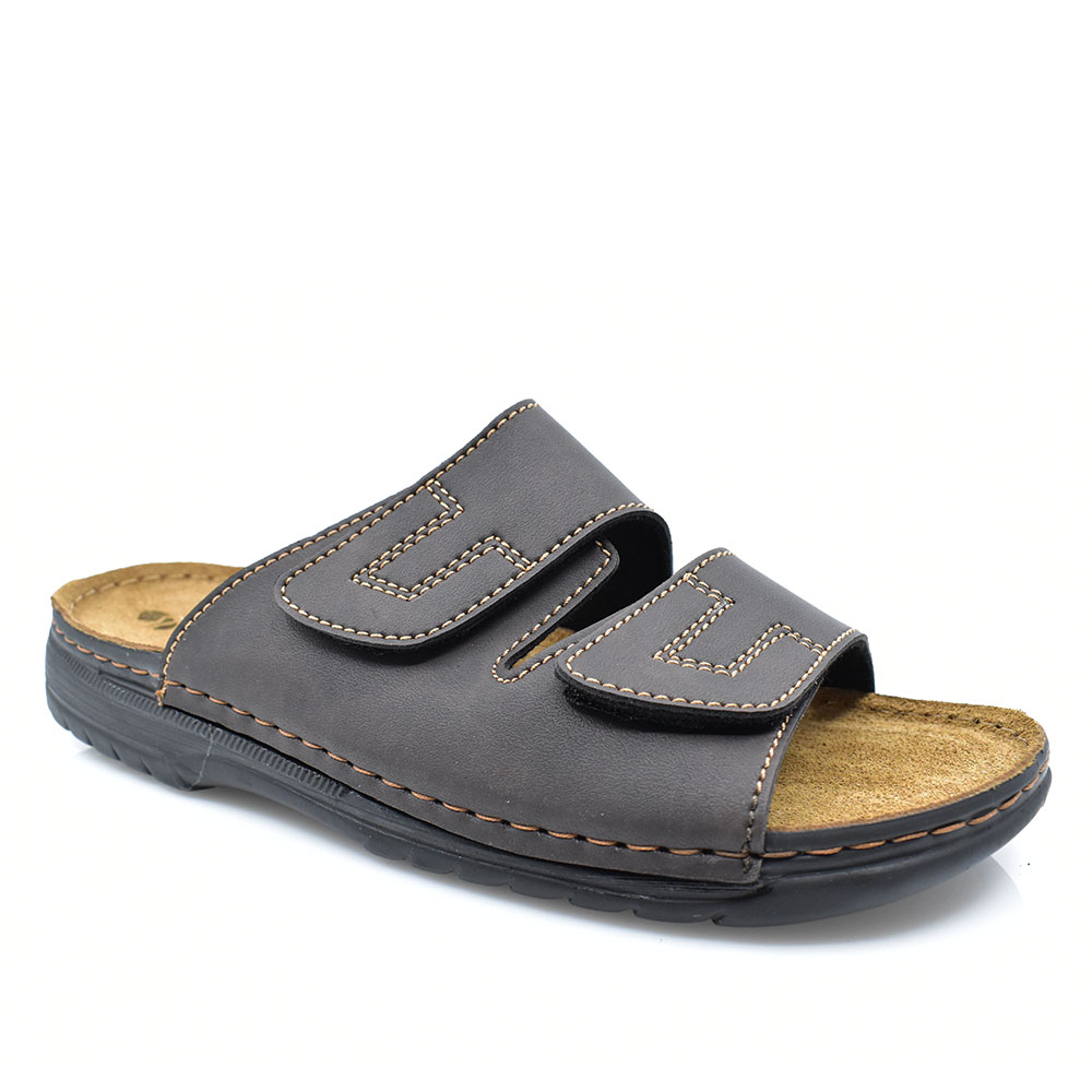 Ανδρικές καλοκαιρινές παντόφλες της εταιρείας INBLU κατασκευασμένες από συνθετικό υλικό με δερμάτινο ανατομικό πάτο για άνετο περπάτημα. Διαθέτουν αντιολισθητική σόλα για ασφάλεια όλες τις ώρες της ημέρας και αυτοκόλλητα στο επάνω μέρος για εύκολη εφαρμογή.