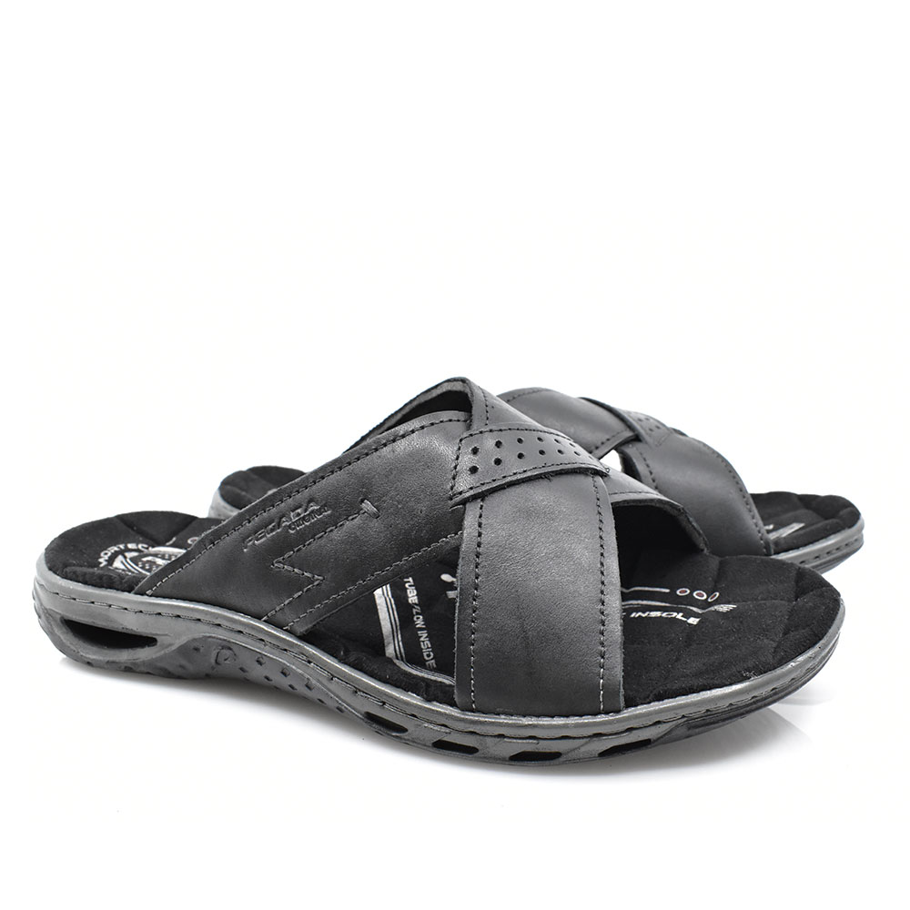 Ανδρικές παντόφλες της εταιρείας PEGADA κατασκευασμένες από δέρμα και ύφασμα. Εξοπλισμένες με την τεχνολογία Amortech για απόσβεση κραδασμών και άνετο βάδισμα. Ιδανικές για καθημερινή χρήση.