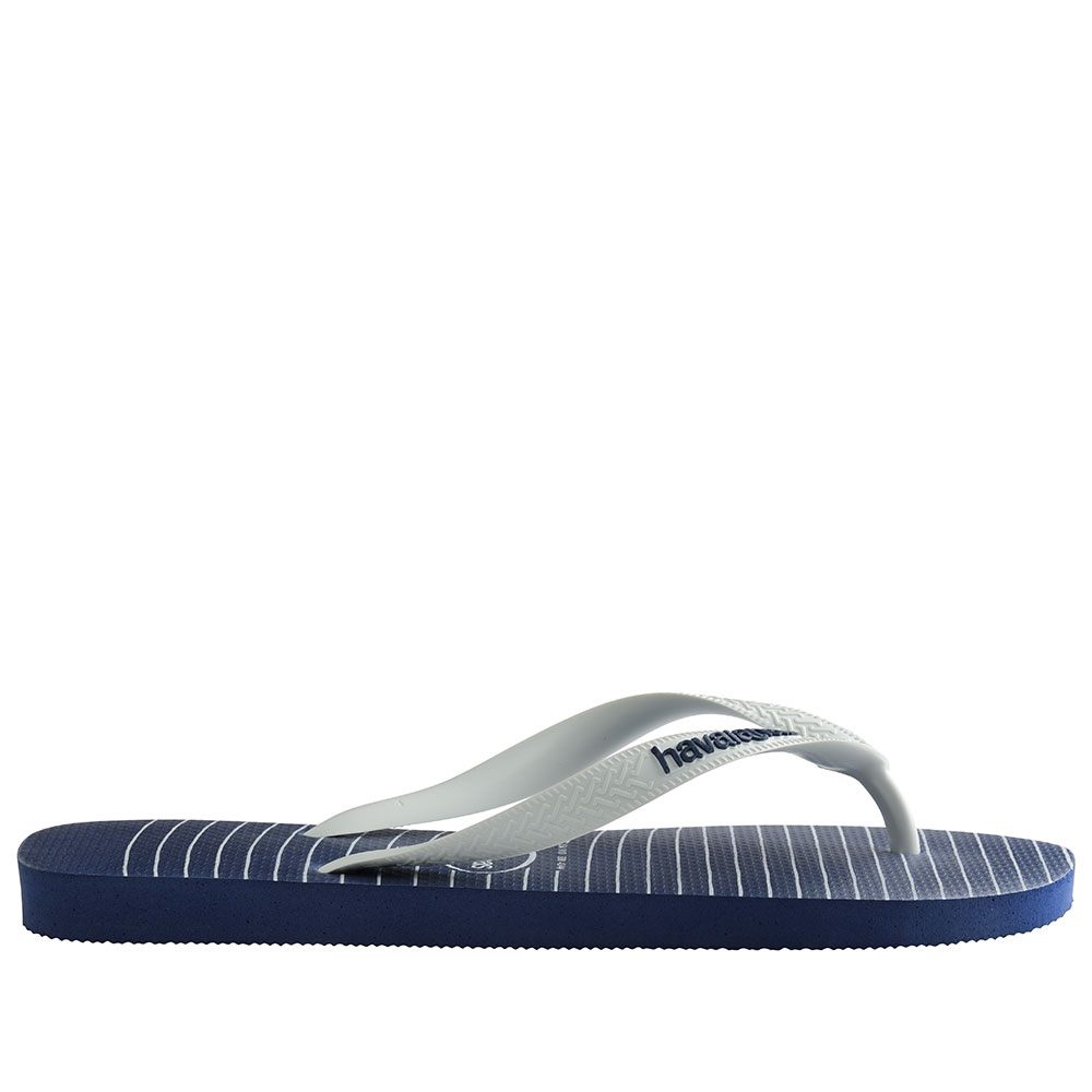Ανδρικές σαγιονάρες της εταιρείας HAVAIANAS κατασκευασμένες εξ’ολοκλήρου από επεξεργασμένο καουτσούκ. Η εξωτερική σόλα τους διαθέτει αυλακώσεις για αποτελεσματική πρόσφυση και ανάγλυφο λογότυπο της εταιρείας. Σας προτείνουμε να επιλέξετε ένα νούμερο μεγαλύτερο από το real size του ποδιού σας.