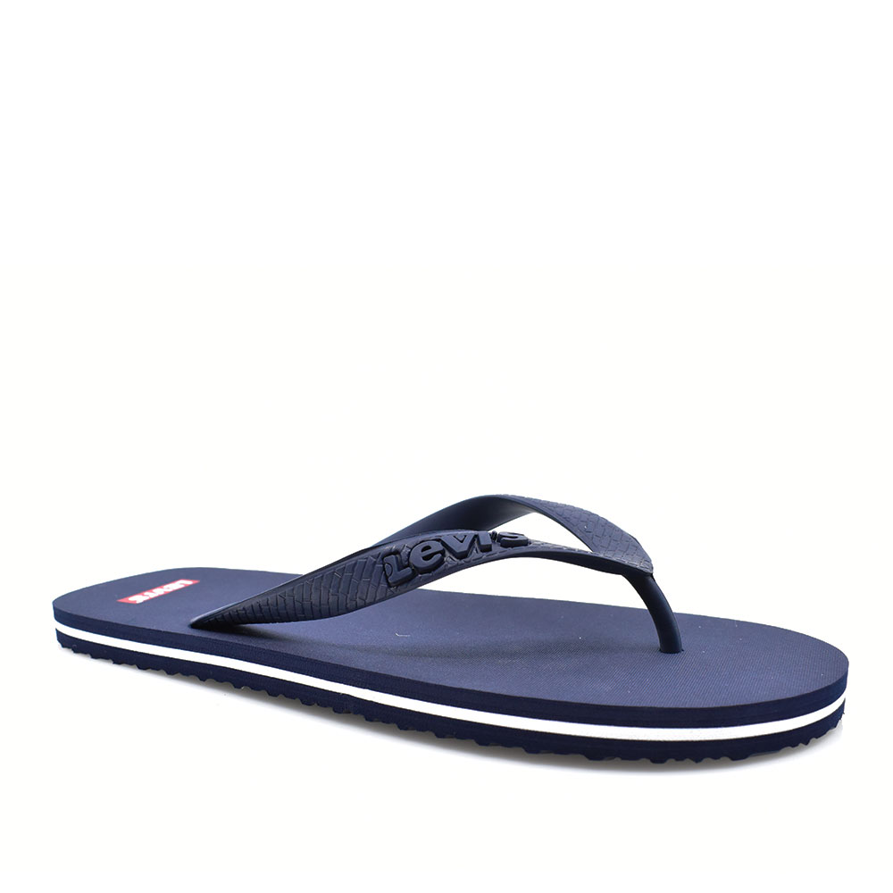 Ανδρικές σαγιονάρες της εταιρείας LEVIS κατασκευασμένες εξ’ολοκλήρου από επεξεργασμένο συνθετικό υλικό. Η εξωτερική σόλα τους διαθέτει αυλακώσεις για αποτελεσματική πρόσφυση, με σχέδιο και ανάγλυφο λογότυπο της εταιρείας.