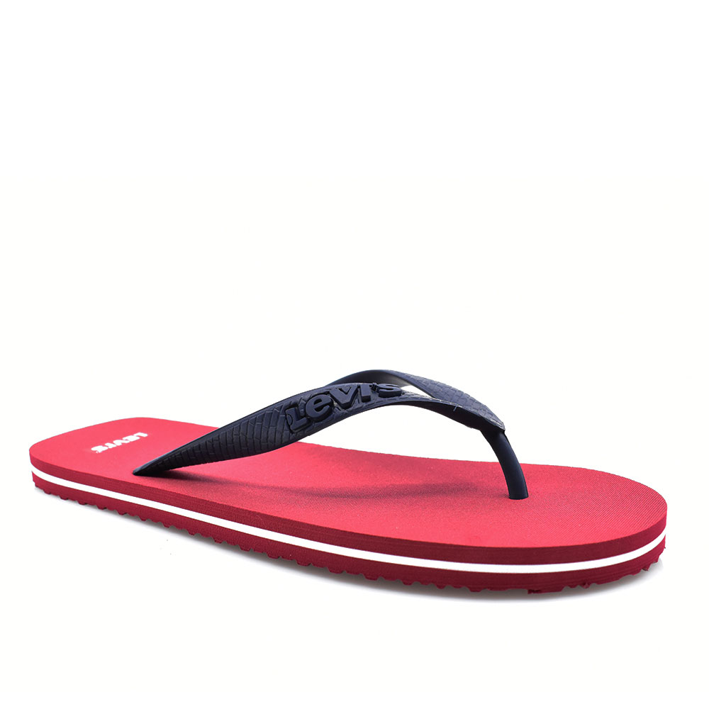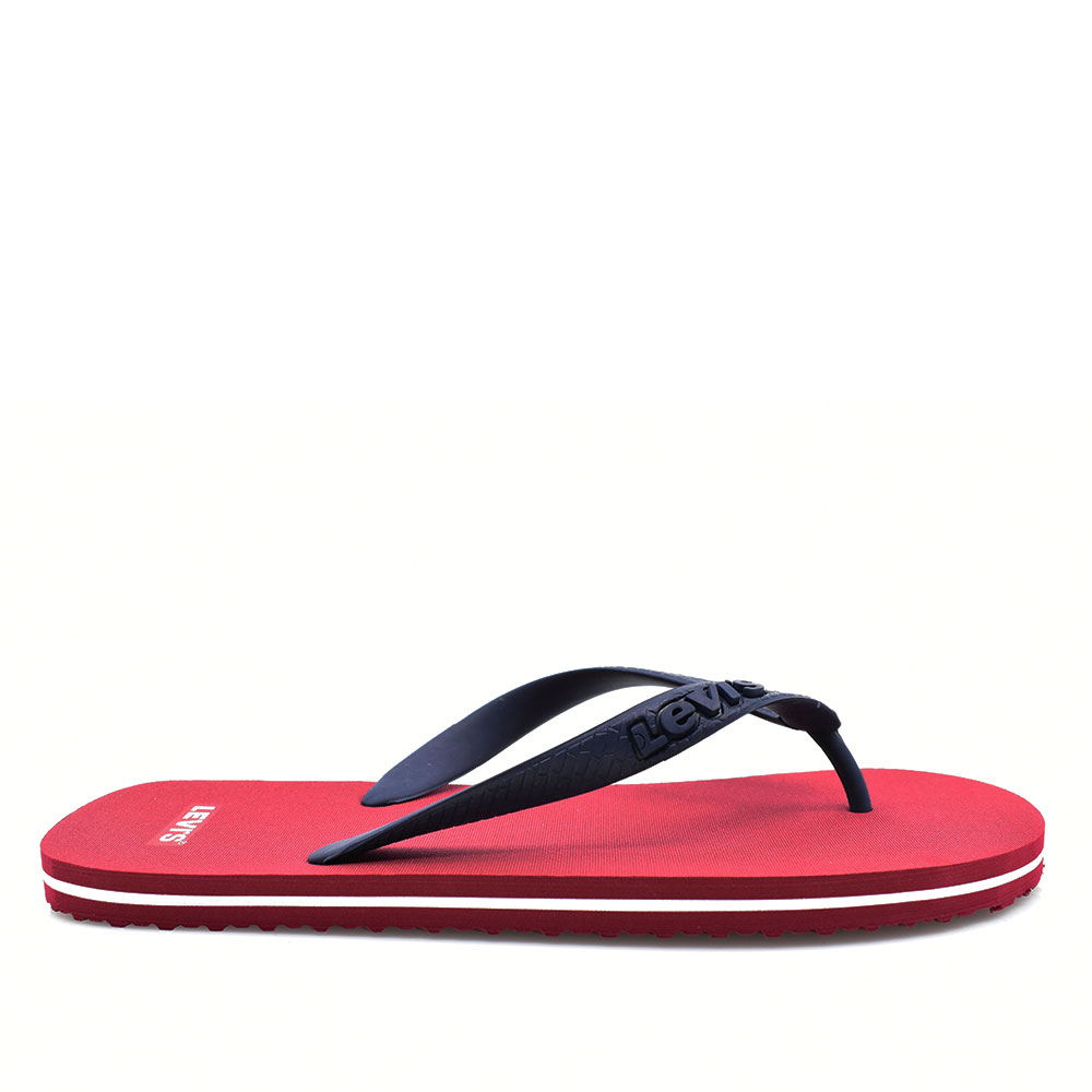 Ανδρικές σαγιονάρες της εταιρείας LEVIS κατασκευασμένες εξ’ολοκλήρου από επεξεργασμένο συνθετικό υλικό. Η εξωτερική σόλα τους διαθέτει αυλακώσεις για αποτελεσματική πρόσφυση, με σχέδιο και ανάγλυφο λογότυπο της εταιρείας.