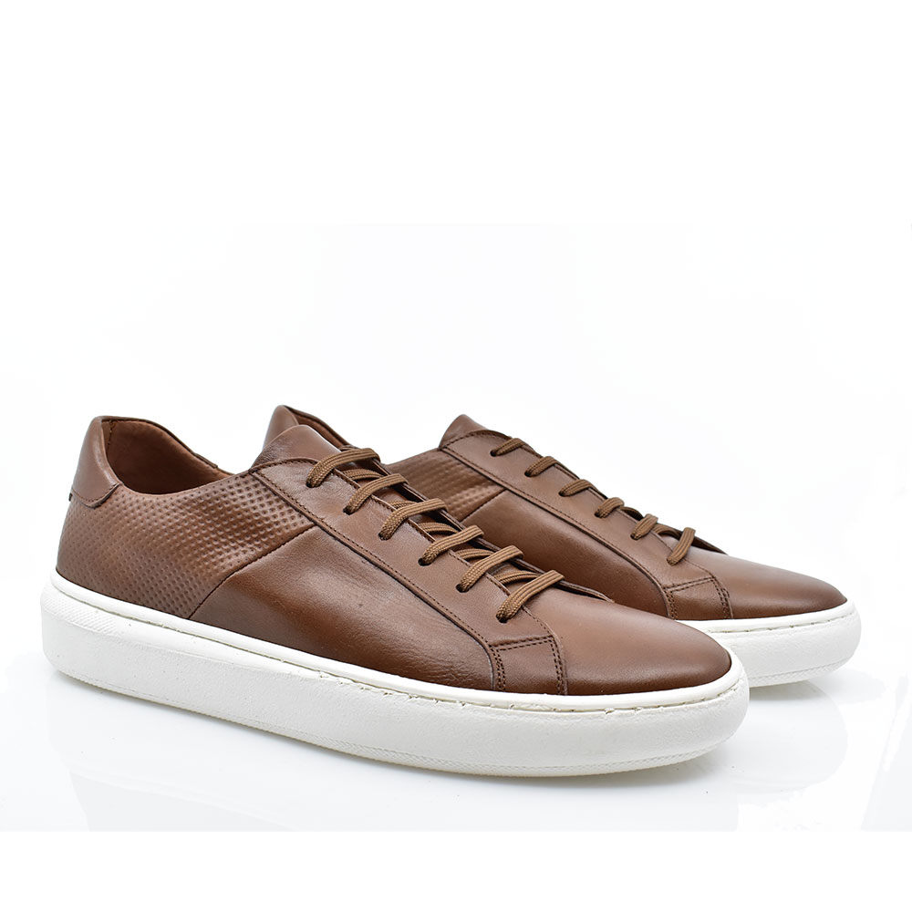 Ανδρικά δετά sneakers της ελληνικής εταιρείας KALT κατασκευασμένα από δέρμα άριστης ποιότητας. Διαθέτουν αντιολισθητική σόλα για μεγαλύτερη ασφάλεια σε κάθε σας βήμα, είναι κατάλληλα να σας συνοδεύσουν σε κάθε σας δραστηριότητα χάρη στον ανατομικό τους πάτο χαρίζοντας έτσι άνετο περπάτημα. Σας προτείνουμε ένα νούμερο μικρότερο καθώς έχουν άνετη εφαρμογή.