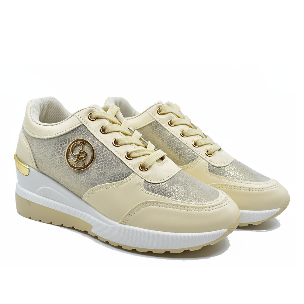 Γυναικεία sneakers με πλατφόρμα κατασκευασμένα από συνθετικό υλικό. Η σόλα ύψους 6,5cm, χαρίζει περισσότερη άνεση στο βάδισμα. Δένουν με κορδόνια για πιο εύκολη εφαρμογή. Με μεταλλικές λεπτομέρειες για να σας συνοδεύσουν στις καθημερινές σας εμφανίσεις.