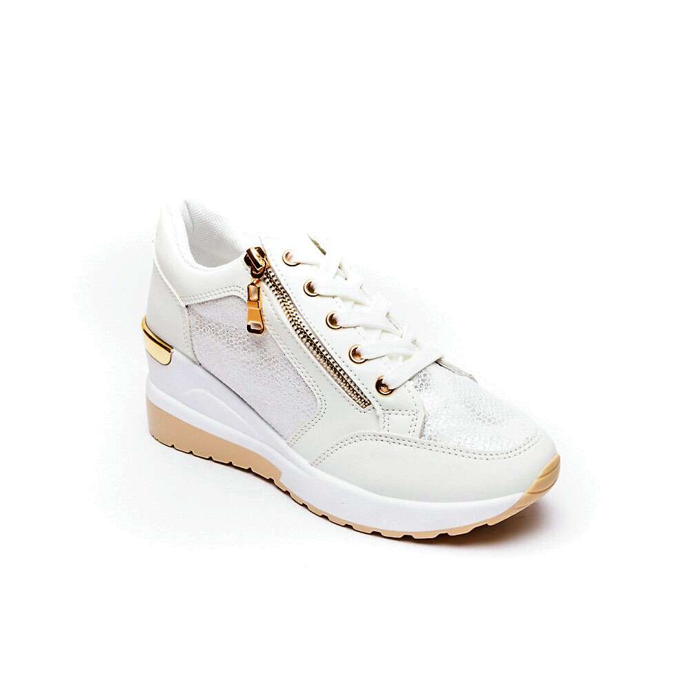 Γυναικεία sneakers με πλατφόρμα κατασκευασμένα από συνθετικό υλικό με διακοσμητικό φερμουάρ στην εξωτερική μεριά. Ιδανικά να σας συνοδεύσουν σε κάθε σας εμφάνιση!