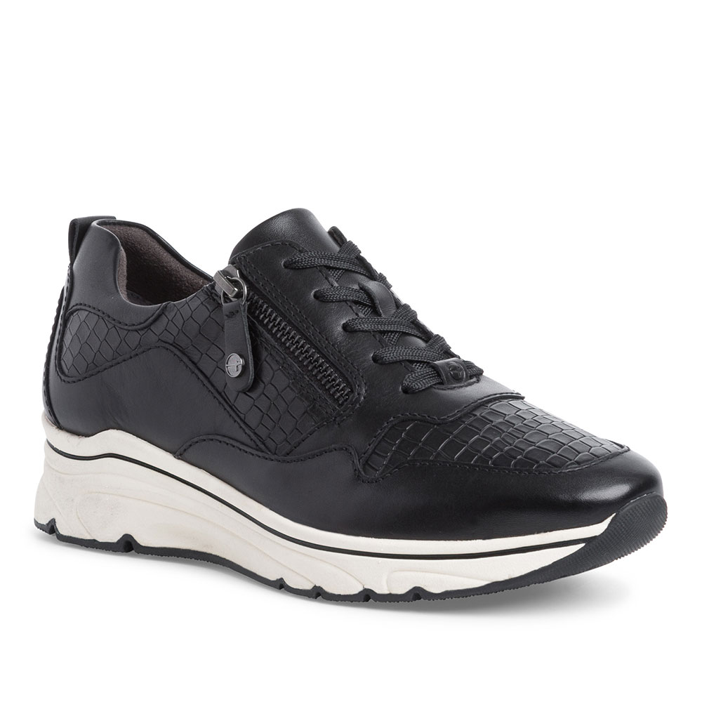 Γυναικεία sneakers του οίκου TAMARIS κατασκευασμένα από γνήσιο δέρμα υψηλής ποιότητας. Είναι εξοπλισμένα με ειδική εσωτερική ενίσχυση που βοηθά στην απορρόφηση των κραδασμών. Διαθέτουν αντιολισθητική σόλα για περισσότερη ασφάλεια στο περπάτημα, με φερμουάρ στο πλάι για καλύτερη και πιο εύκολη εφαρμογή.