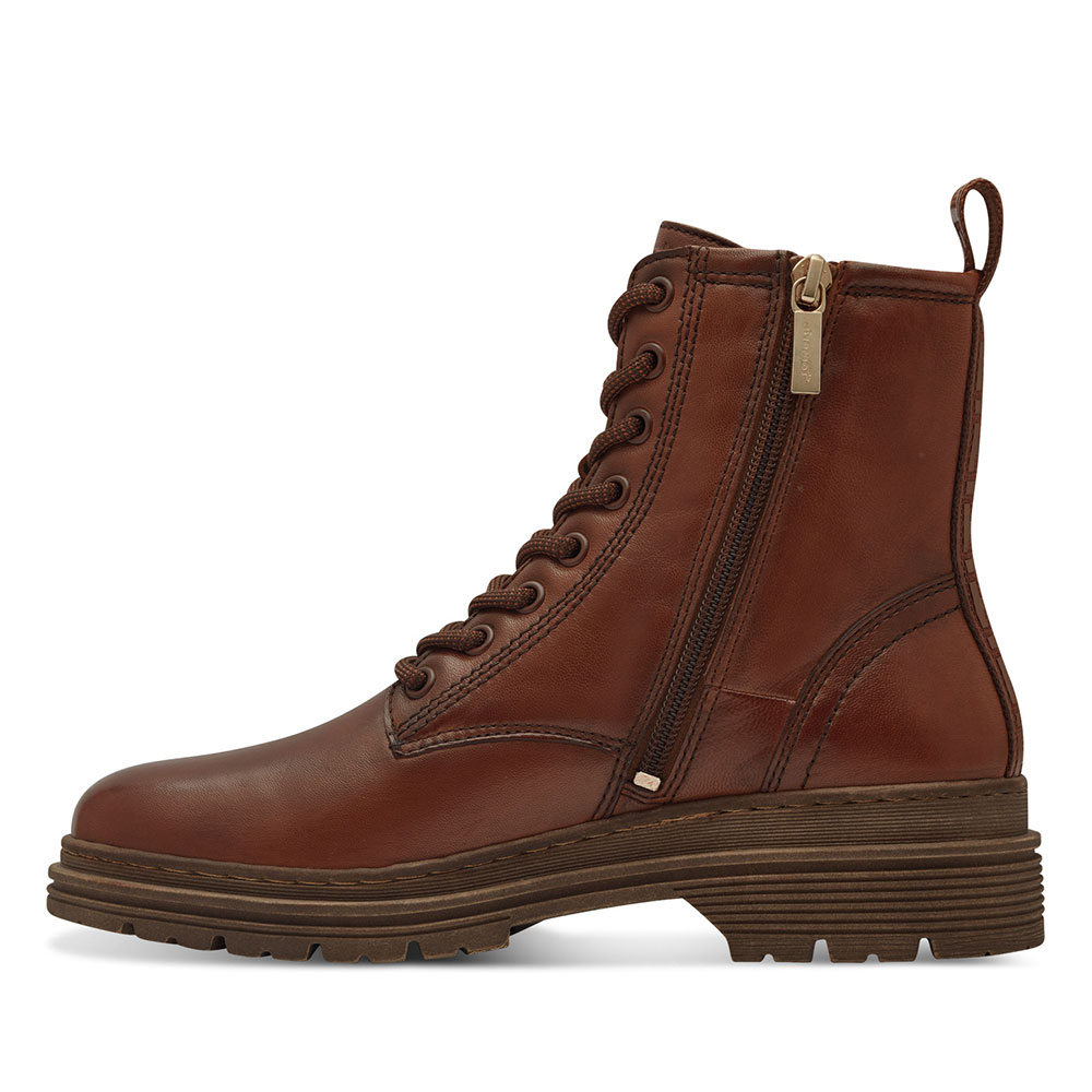 Γυναικεία μποτάκια με κορδόνι της εταιρείας TAMARIS κατασκευασμένα από δέρμα, διαθέτουν φερμούαρ για ευκολότερη εφαρμογή και TOUCH-IT σόλα για 100% πιο άνετο βάδισμα. Η μαλακή σόλα, σε συνδυασμό με το σωματικό βάρος που διαθέτει το άτομο που φορά το παπούτσι, διαμορφώνεται διαρκώς ,διασφαλίζοντας την μέγιστη άνεση.