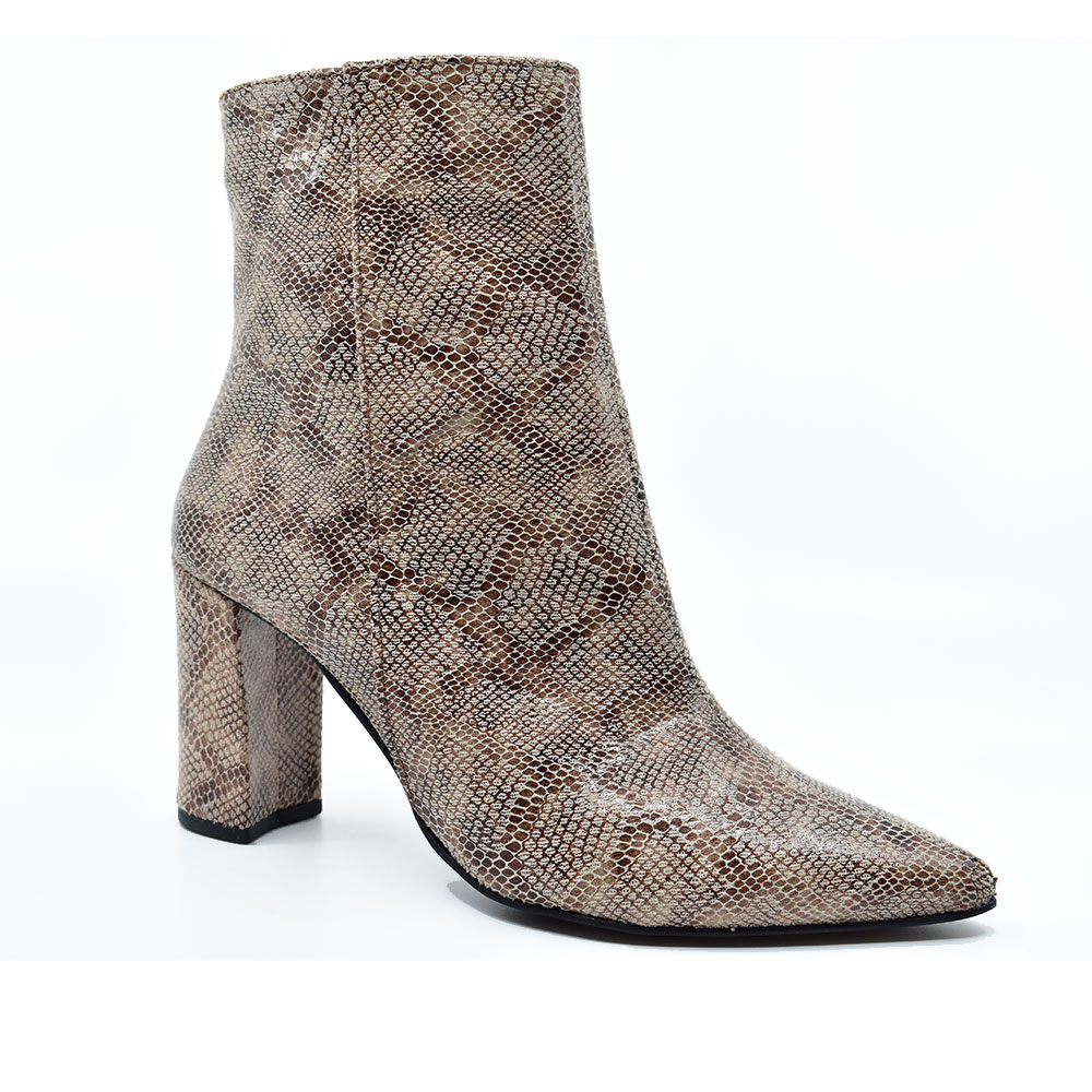 Γυναικεία μποτάκια της ελληνικής εταιρείας AMELIA κατασκευασμένα από συνθετικό υλικό υψηλής ποιότητας. Διαθέτουν φερμουάρ για εύκολη εφαρμογή και μαλακό εσωτερικό πατάκι χαρίζοντας άνεση στα περπάτημα σας. Ένα ιδιαίτερο print μοντέρνο και ταυτόχρονα κομψό, δημιουργήθηκε για να σας συνοδεύσει στις βραδινές σας εμφανίσεις.
