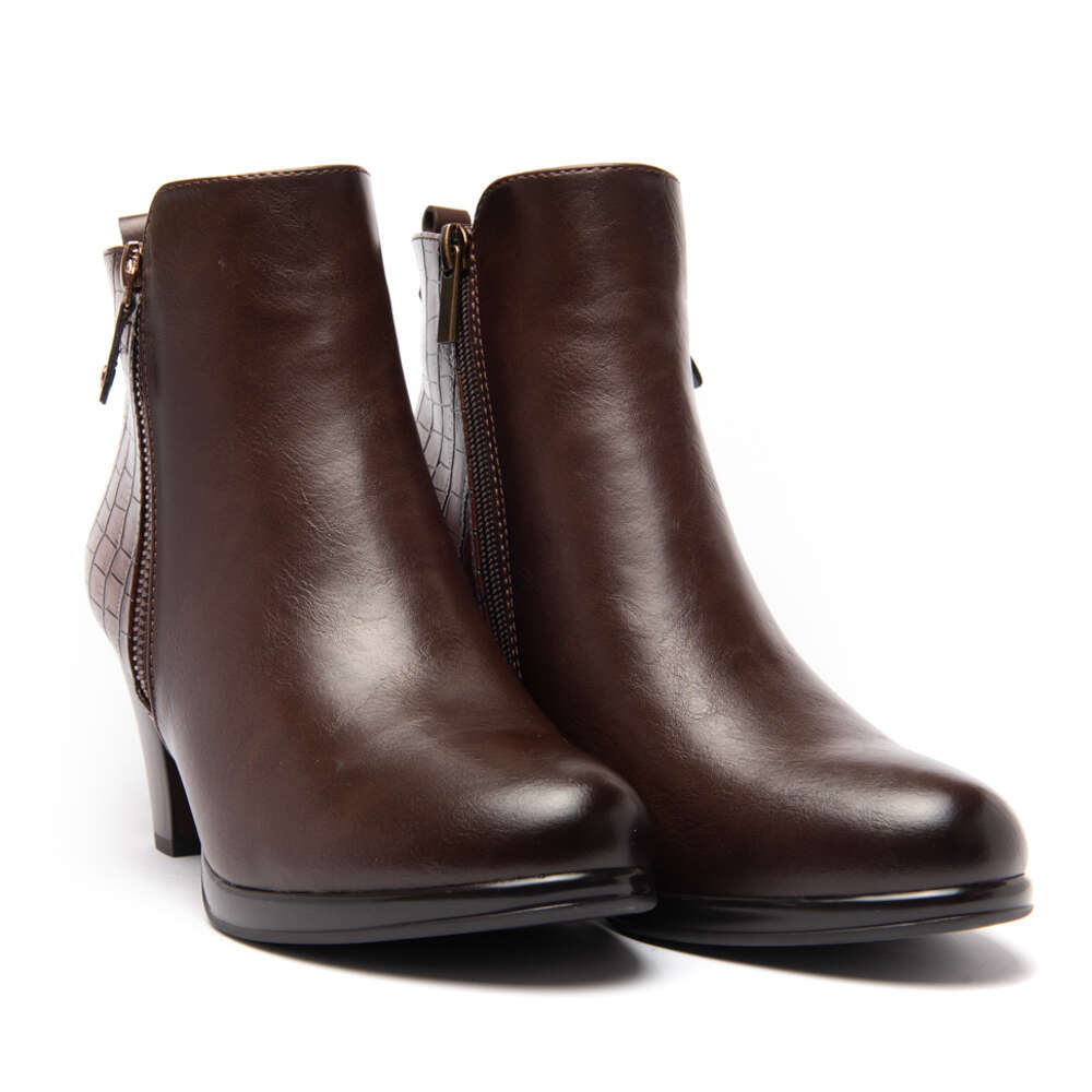 Γυναικεία μποτάκια αστραγάλου της εταιρείας LA COQUETTE κατασκευασμένα από συνθετικό υλικό υψηλής ποιότητας με διακοσμητικό φερμουάρ και croco υφή στην πίσω πλευρά. Διαθέτουν κλείσιμο με φερμουάρ, μαλακό πάτο και αντιολισθητική σόλα.