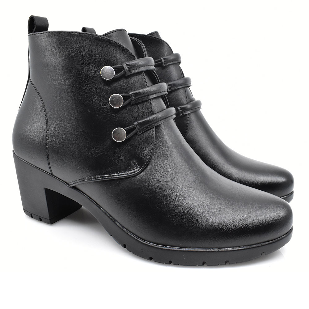 Γυναικεία μποτάκια της εταιρείας BAROQUE κατασκευασμένα από συνθετικό υλικό υψηλής ποιότητας με μαλακό πάτο για άνετο βάδισμα. Διαθέτουν φερμουάρ στο πλάι για εύκολη εφαρμογή και αφαίρεση και λαστιχένια κορδόνια. Ιδανικά να φορεθούν από το πρωί στην δουλειά έως την βραδινή έξοδο.