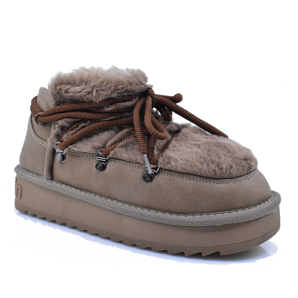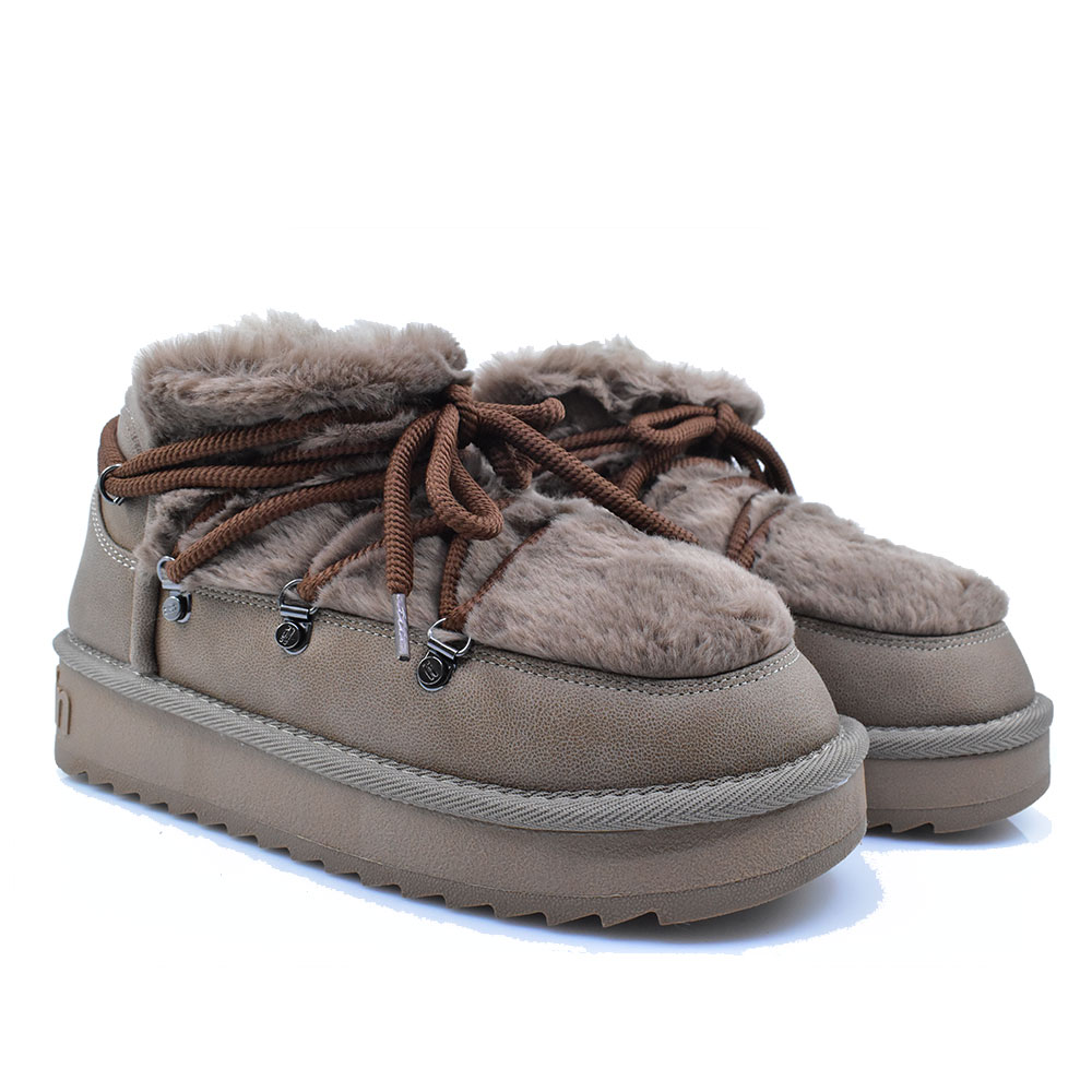 Γυναικεία μποτάκια της εταιρείας D.FRANKLIN κατασκευασμένα από ύφασμα με εσωτερική συνθετική γούνα. Διαθέτουν αντιολισθητική και αντικραδασμική σόλα. Ιδανικά για εξορμήσεις. Σας προτείνουμε ένα νούμερο μεγαλύτερο από το σύνηθες καθώς έχουν στενή εφαρμογή.