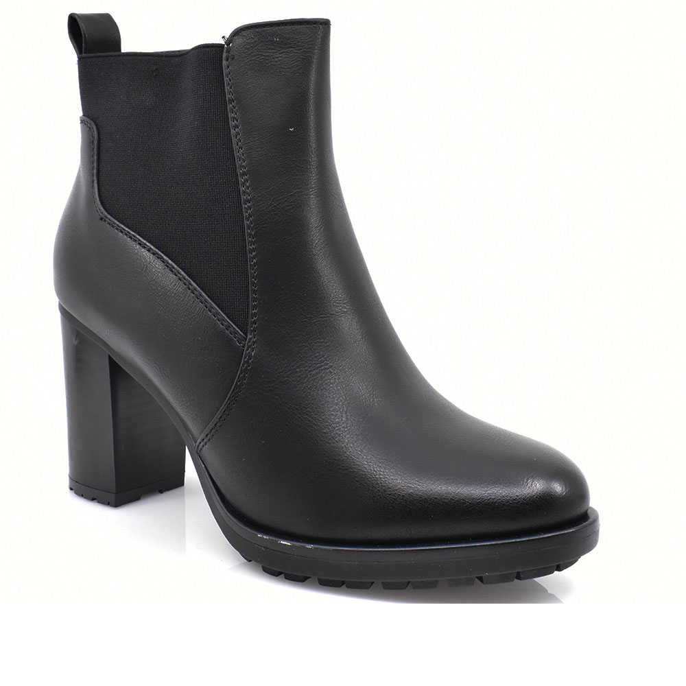 Γυναικεία μποτάκια κατασκευασμένα από συνθετικό υλικό με μαλακό πατάκι για άνετο βάδισμα. Διαθέτουν αντιολισθητική τρακτερωτή σόλα για άνετο βάδισμα. Ιδανικά να σας συνοδεύσουν στις βραδινές σας εξόδους, με φερμουάρ και λάστιχο στο πλάι για εύκολη εφαρμογή.