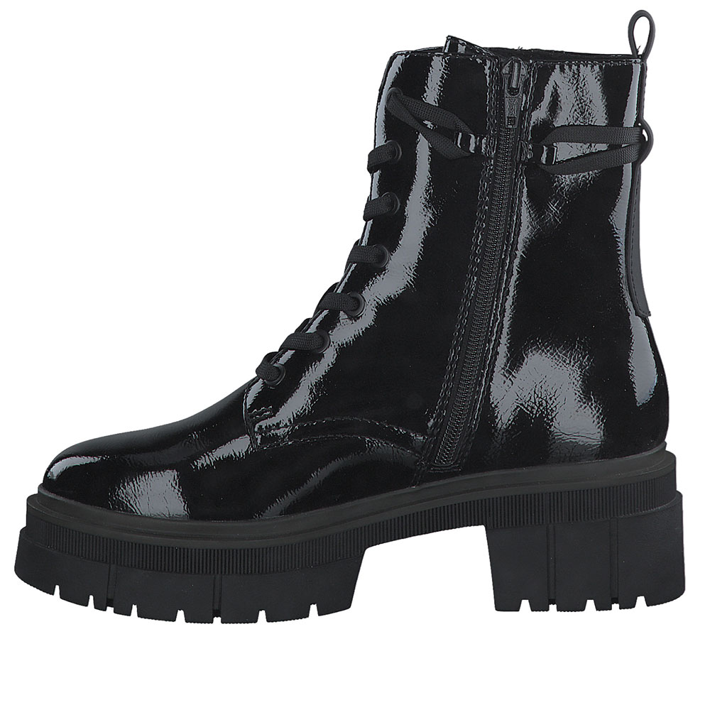 Γυναικεία μποτάκια της εταιρείας S.OLIVER κατασκευασμένα από συνθετικό υλικό υψηλής ποιότητας σε λούστρινη επιφάνεια, με αντιολισθητική τρακτρερωτή σόλα για must εμφανίσεις! Διαθέτουν πολύ μαλακό πάτο τεχνολογίας SOFT FOAM για έξτρα άνετο βηματισμό.