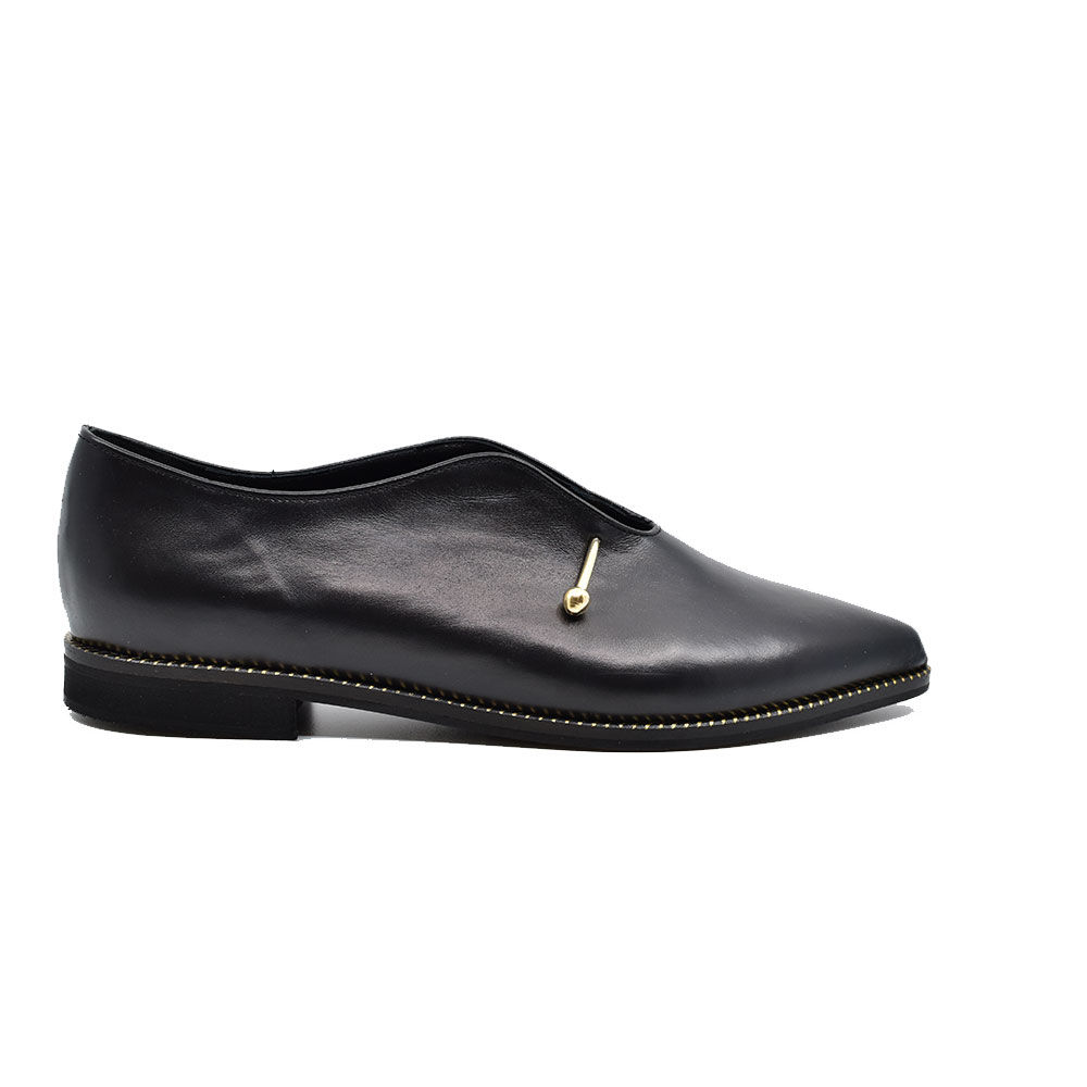 Γυναικεία μοκασίνια ελληνικής κατασκευής από μαλακό δέρμα με άνετη φόρμα. Η μεταλλική λεπτομέρεια στο επάνω μέρος δίνει χαρακτήρα και στυλ σε κάθε σας εμφάνιση.