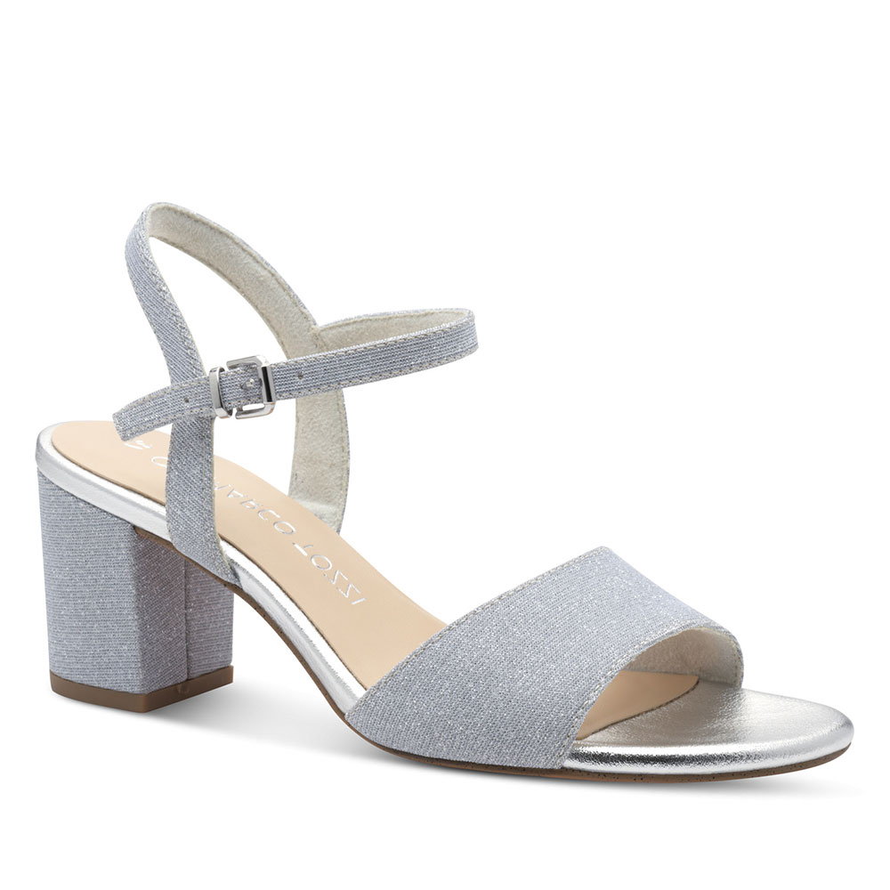 Γυναικεία πέδιλα του οίκου MARCO TOZZI κατασκευασμένα από συνθετικό υλικό καλής ποιότητας. Το ύψος του τακουνιού τους, 6,5cm, είναι ιδανικό για πολύωρη χρήση. Δένουν με κούμπωμα στο πίσω μέρος του ποδιού.
