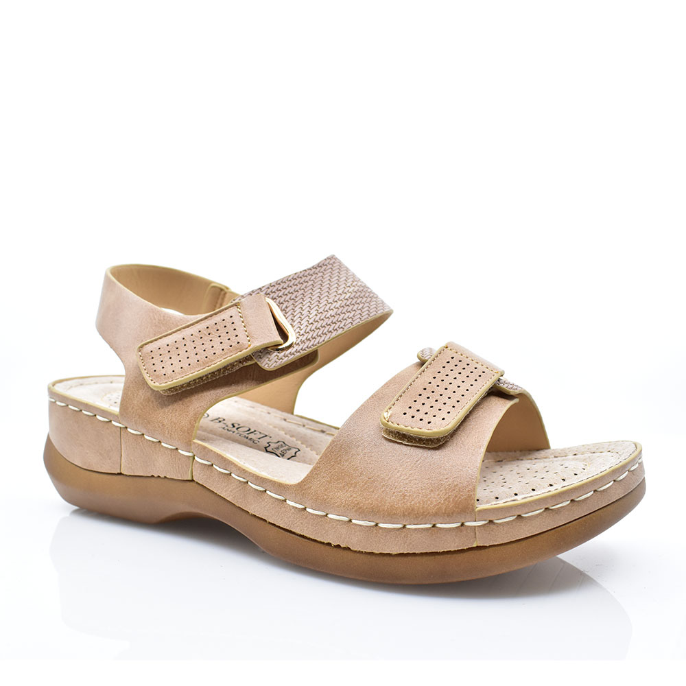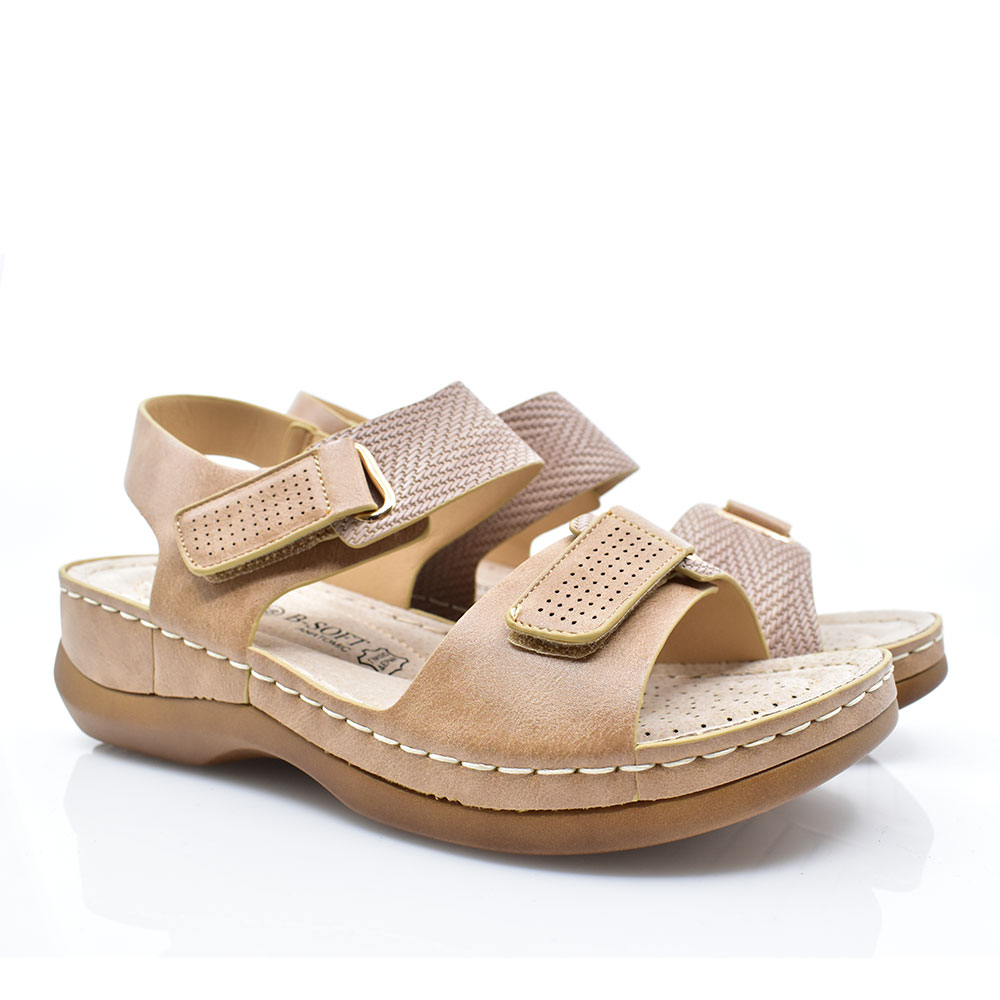 Γυναικεία πέδιλα της εταιρείας B-SOFT κατασκευασμένα από συνθετικό υλικό υψηλής ποιότητας με δερμάτινο ανατομικό πάτο για άνετο βηματισμό. Με αντιολισθητική σόλα για σταθερότητα στα βήματά σας και αυτοκόλλητα για εύκολη και καλύτερη εφαρμογή.