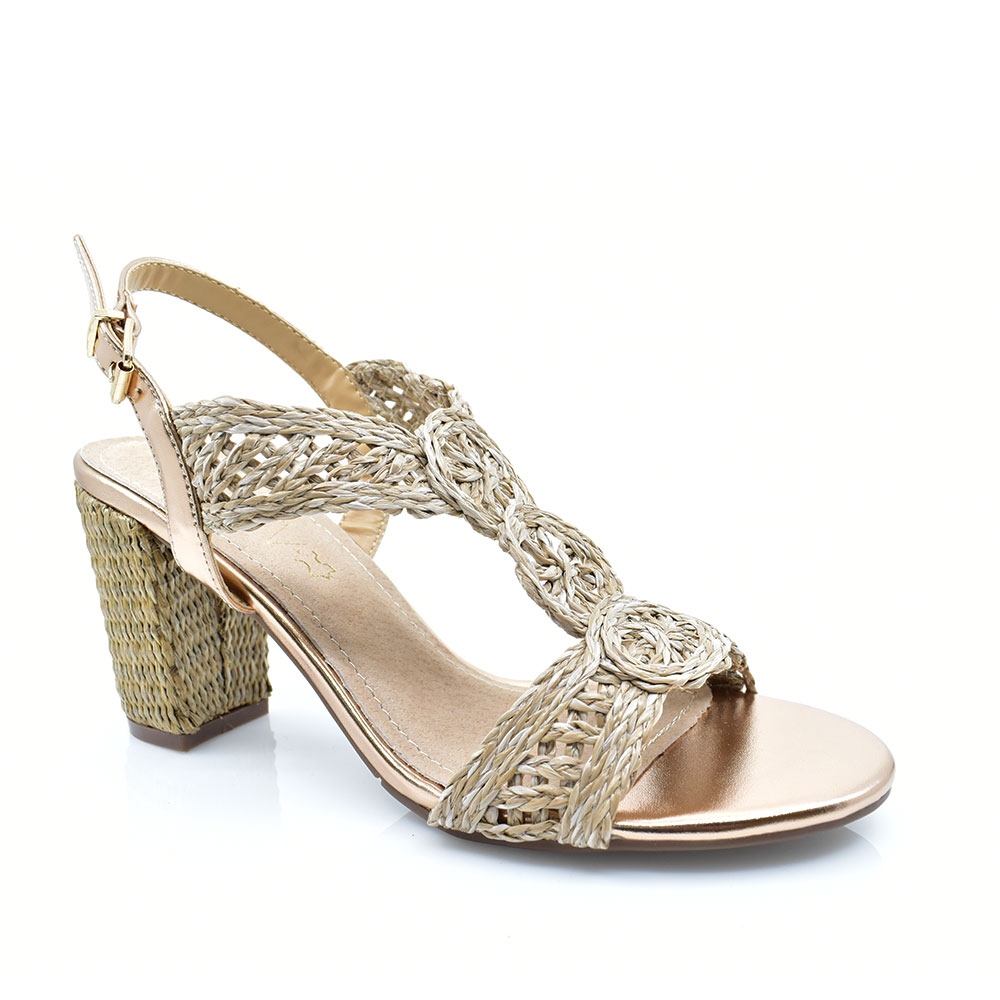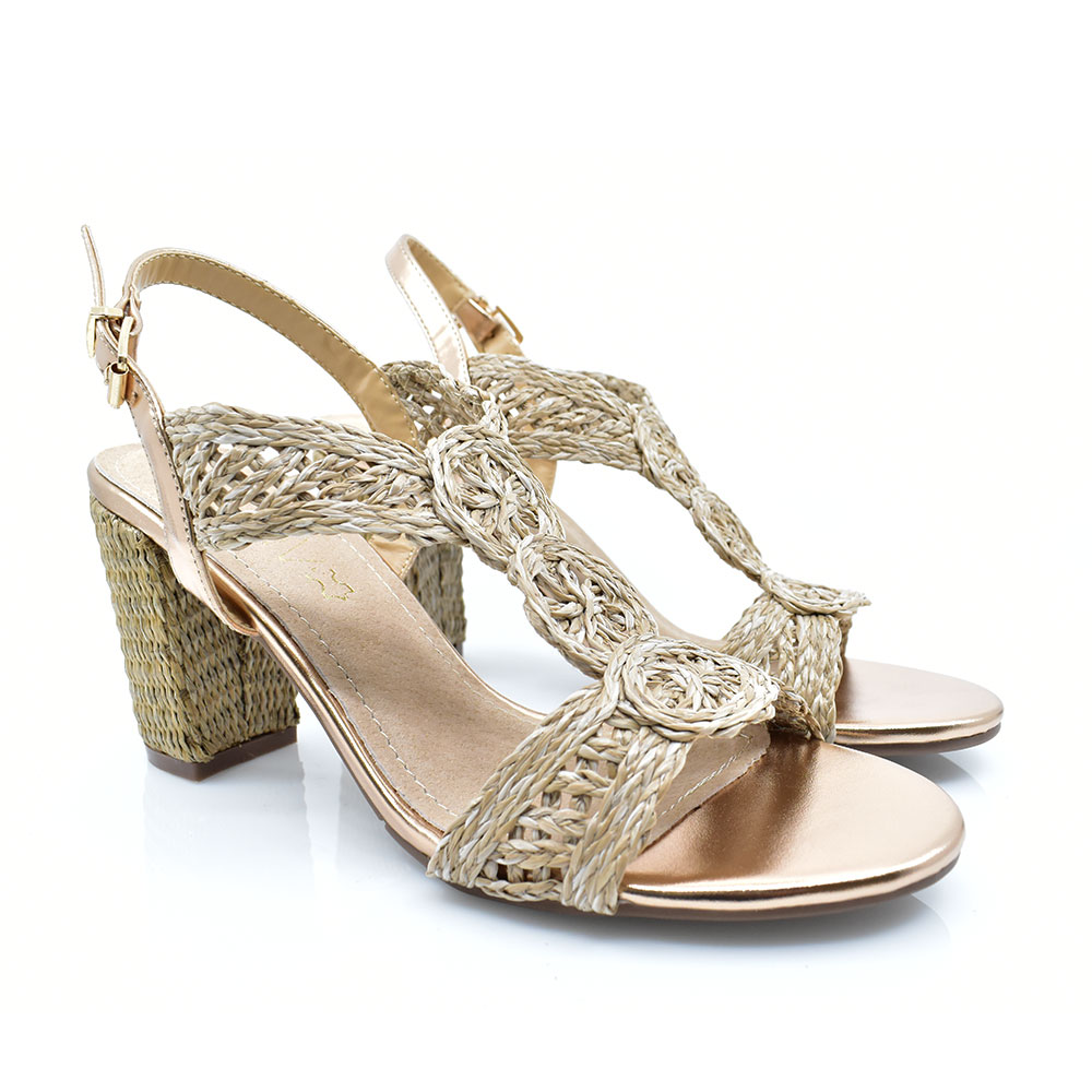 Γυναικεία πέδιλα ελληνικής προέλευσης της εταιρείας ENVIE κατασκευασμένα από συνθετικό υλικό με δερμάτινο μαλακό πάτο για άνετο και ξεκούραστο βάδισμα. Διαθέτουν χοντρό τακούνι ύψους 8cm ιδανικό για πολύωρη ορθοστασία και δένουν με κούμπωμα για σταθερή εφαρμογή.