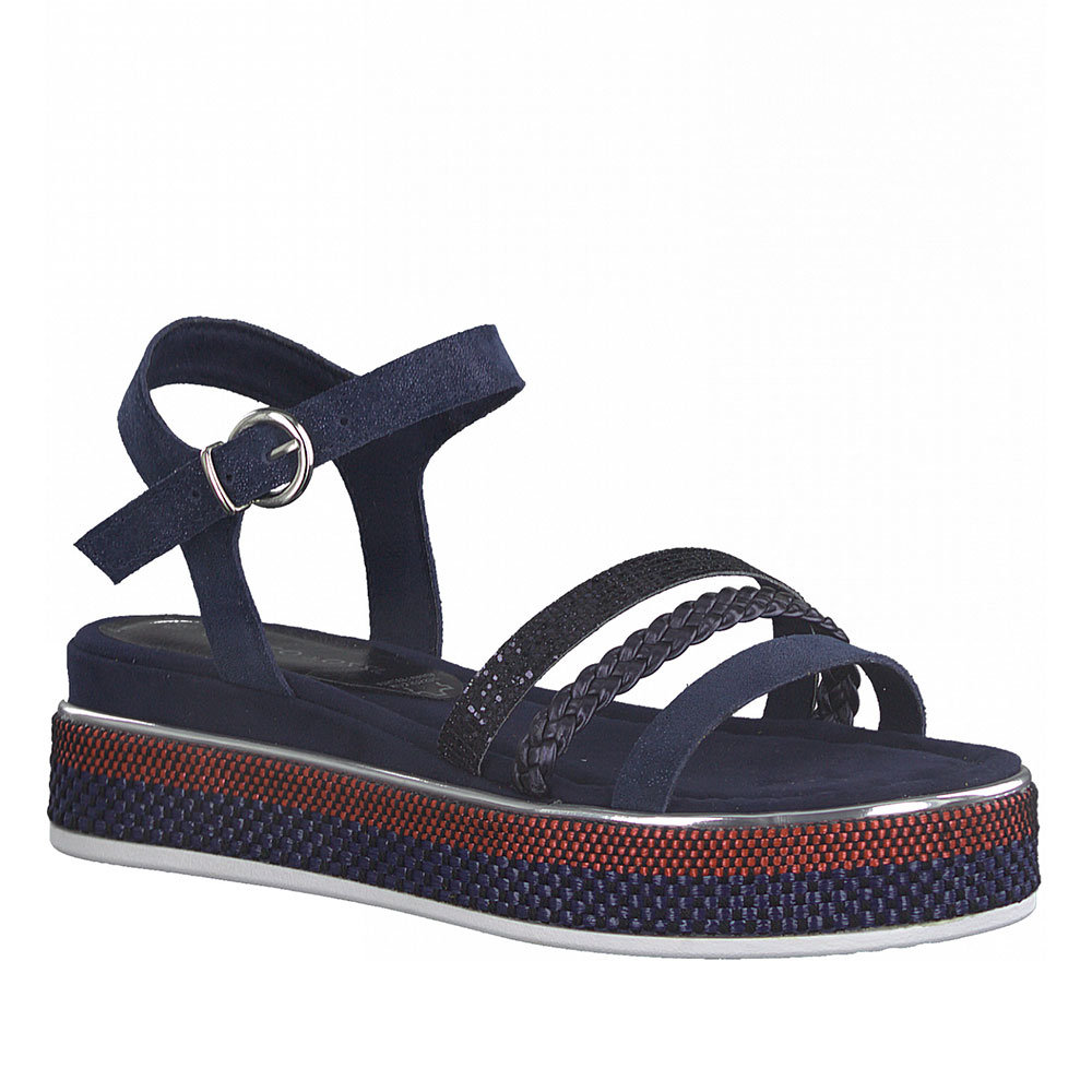 Γυναικεία πέδιλα του οίκου MARCO TOZZI κατασκευασμένα από γνήσιο δέρμα και ύφασμα υψηλής ποιότητας. Διαθέτουν ειδική ενίσχυση τεχνολογίας FEEL ME χαρίζοντας άνεση στο βάδισμα και απορροφώντας ταυτόχρονα τους κραδασμούς. Η σόλα ύψους 5cm, είναι ιδανική για πολύωρη χρήση και το ιδιαίτερο σχέδιο τους θα σας βοηθήσει να απογειώσετε τις καθημερινές σας εμφανίσεις.