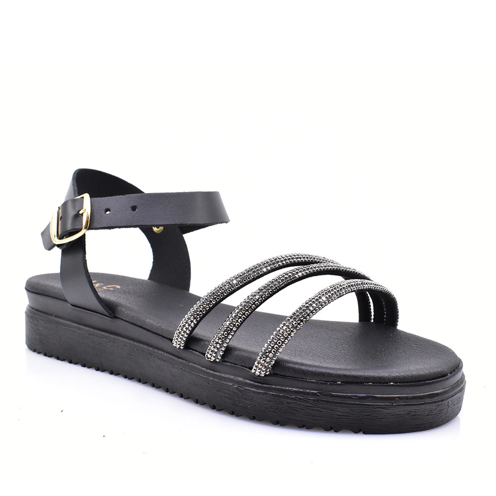 Γυναικεία σανδάλια κατασκευασμένα από μαλακό δέρμα με φαρδυά φάσα κρατά σταθερά το πόδι, αγκαλιάζει σωστά το κουντεπιέ.