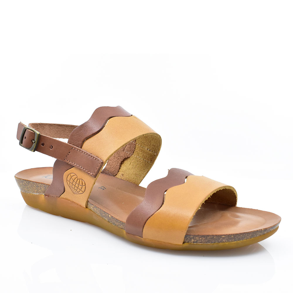 Γυναικεία σανδάλια της ισπανικής εταιρείας TAKE ME κατασκευασμένα από δέρμα άριστης ποιότητας. Είναι εξοπλισμένα με μαλακό ανατομικό πάτο για πιο άνετο βάδισμα. Ιδανικά να σας συνοδεύσουν στις καθημερινές σας εμφανίσεις, δένουν με κούμπωμα στο πλάι για περισσότερη σταθερότητα.