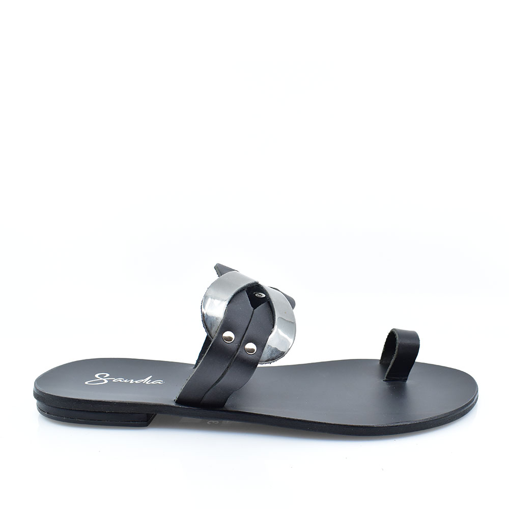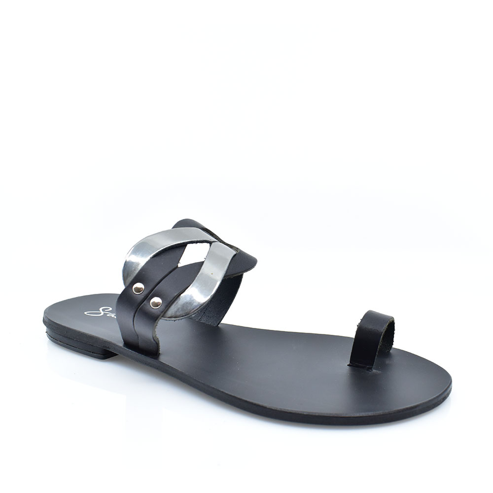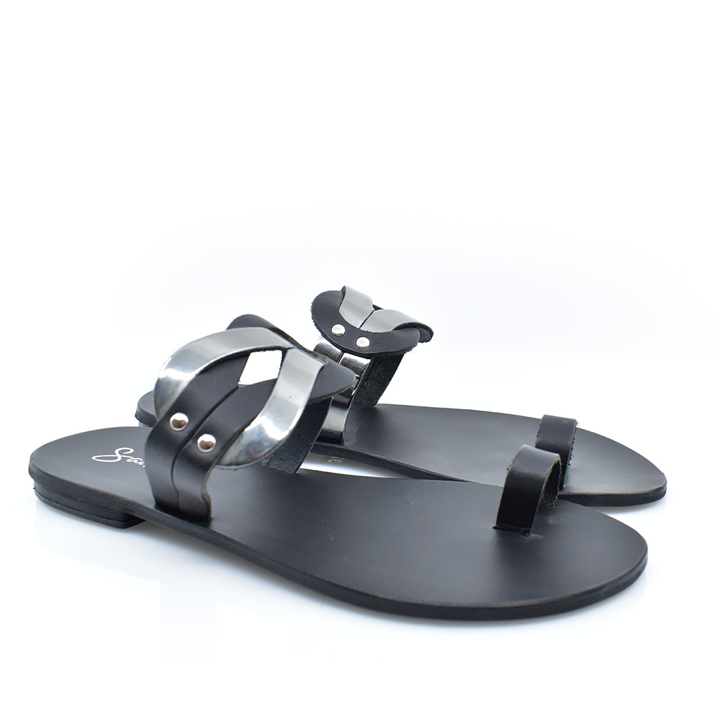 Γυναικεία σανδάλια flat ελληνικής προέλευσης κατασκευασμένα από δέρμα άριστης ποιότητας με αντιολισθητική σόλα για μεγαλύτερη ασφάλεια. Ιδανική λύση για να ολοκληρώσετε τα καθημερινά σας outfits χωρίς να χάσουν την κομψότητα τους.