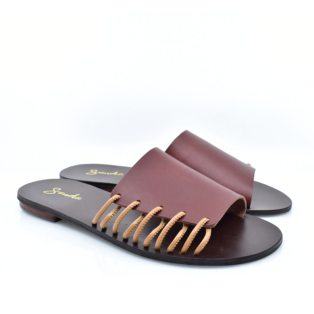 Γυναικεία σανδάλια flat ελληνικής προέλευσης κατασκευασμένα από δέρμα άριστης ποιότητας με αντιολισθητική σόλα για μεγαλύτερη ασφάλεια. Ιδανική λύση για να ολοκληρώσετε τα καθημερινά σας outfits χωρίς να χάσουν την κομψότητα τους.