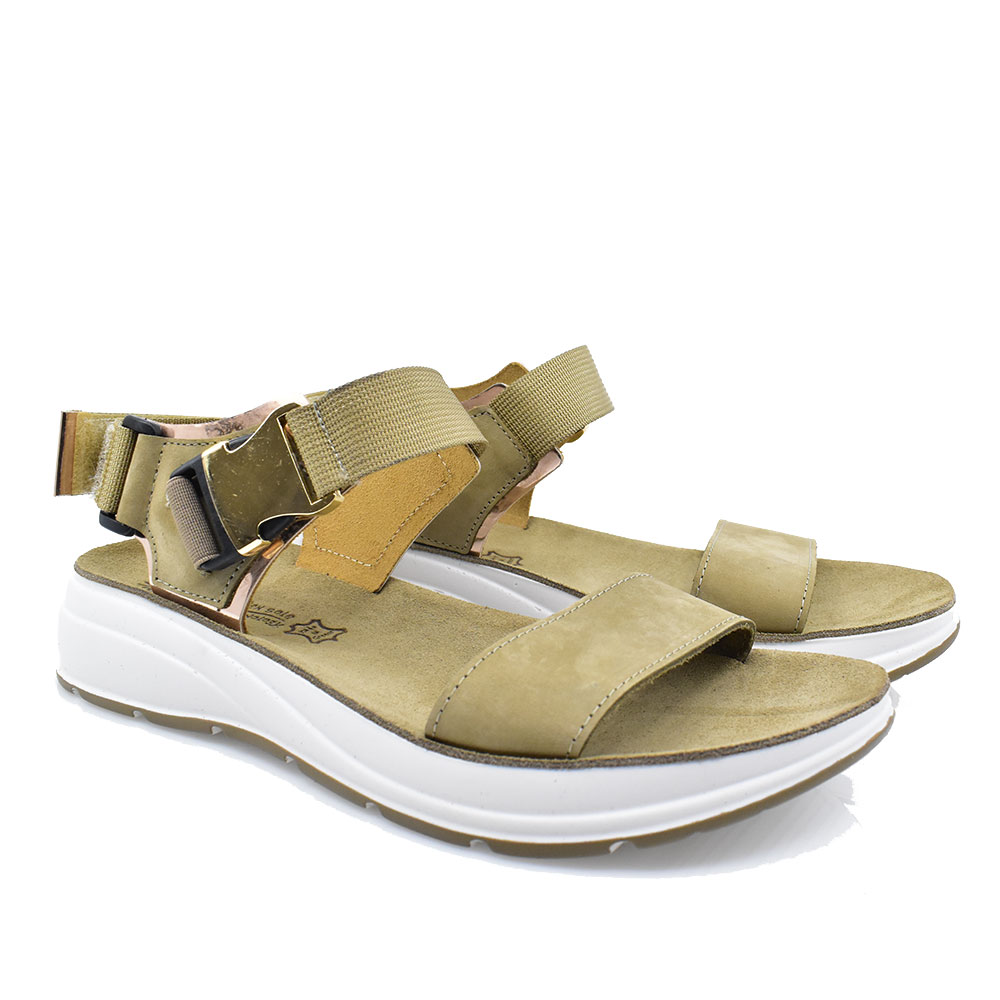Γυναικεία σανδάλια ελληνικής προέλευσης της εταιρείας FANTASY SANDALS κατασκευασμένα από δέρμα άριστης ποιότητας. Χάρη στην ανατομική και αντικραδασμική τους σόλα θα προσφέρουν σιγουριά και προστασία σε κάθε σας βήμα όλο το καλοκαίρι, η αντιολισθητική τους σόλα υπόσχεται ασφάλεια. Κλείνουν μς αυτοκόλλητη ταινία velcro πίσψ μέρος του ποδιού.