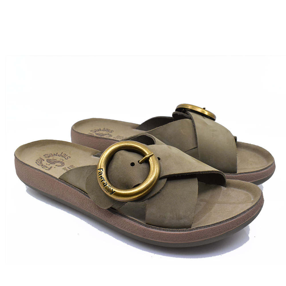 Γυναικεία σανδάλια ελληνικής προέλευσης της εταιρείας FANTASY SANDALS κατασκευασμένα από δέρμα άριστης ποιότητας. Χάρη στην ανατομική και αντικραδασμική τους σόλα θα προσφέρουν σιγουριά και προστασία σε κάθε σας βήμα όλο το καλοκαίρι, η αντιολισθητική τους σόλα υπόσχεται ασφάλεια.