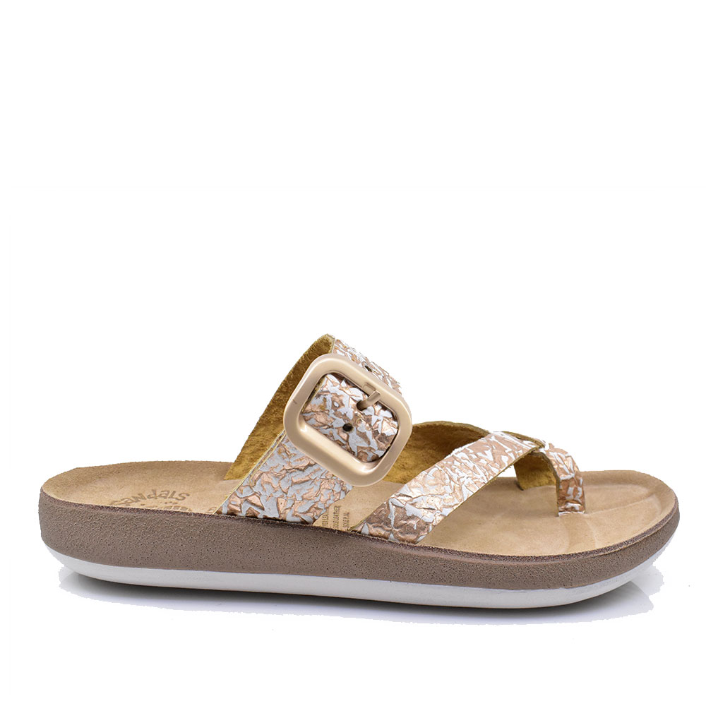 Γυναικεία σανδάλια ελληνικής προέλευσης της εταιρείας FANTASY SANDALS κατασκευασμένα από δέρμα άριστης ποιότητας. Χάρη στην ανατομική και αντικραδασμική τους σόλα θα προσφέρουν σιγουριά και προστασία σε κάθε σας βήμα όλο το καλοκαίρι, η αντιολισθητική τους σόλα υπόσχεται ασφάλεια.