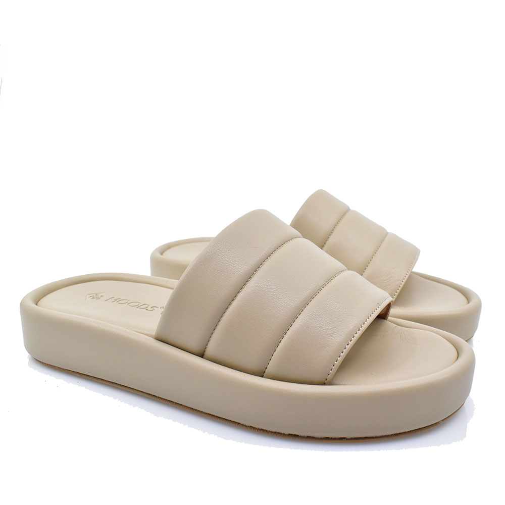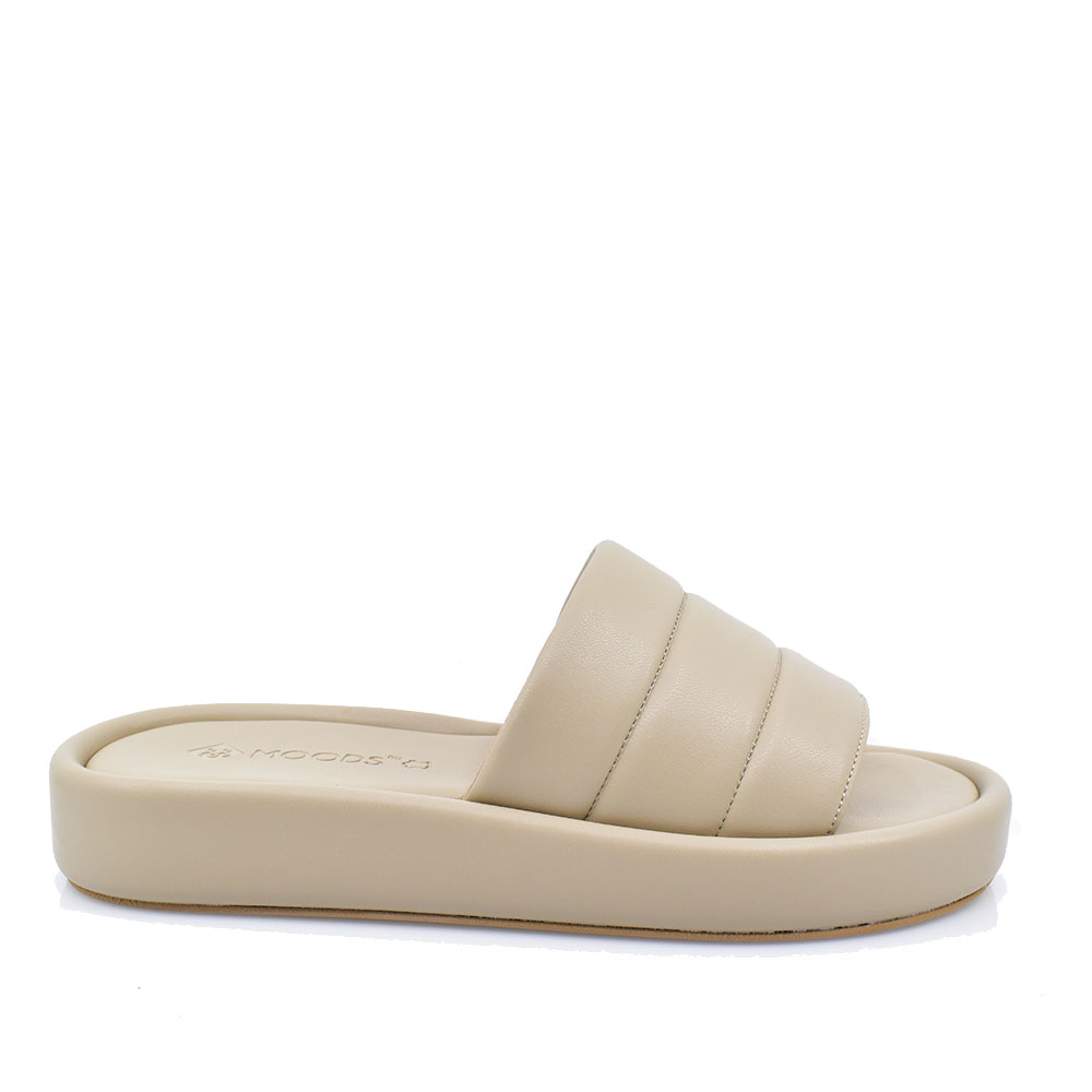 ΓυναικείA σανδάλια της ελληνικής εταιρείας MOODS κατασκευασμένες από μαλακό δέρμα με μαλακό πατάκι και αντιολισθητική σόλα.