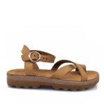Γυναικεία σανδάλια κατασκευασμένα από μαλακό δέρμα με φαρδυά φάσα κρατά σταθερά το πόδι, αγκαλιάζει σωστά το κουντεπιέ.