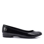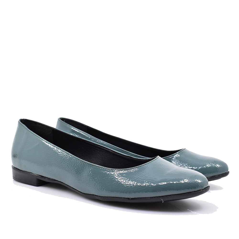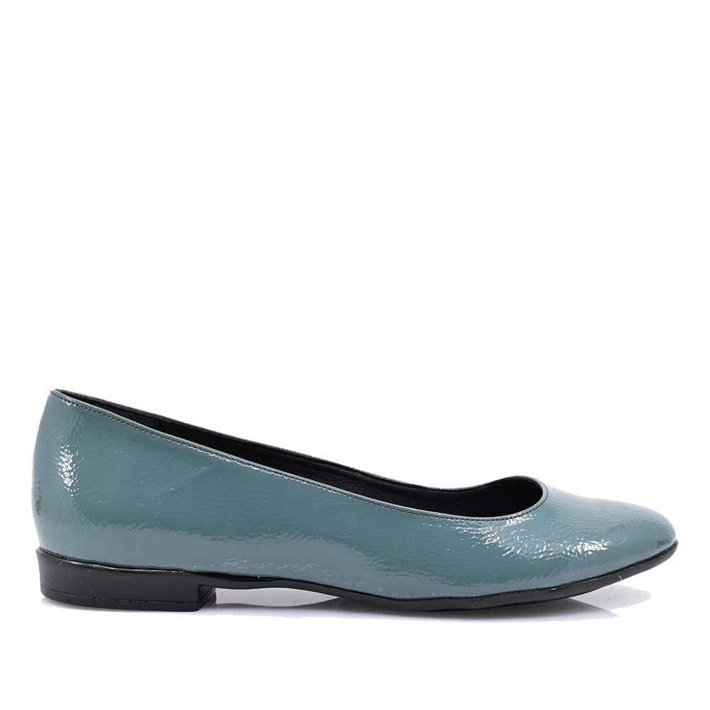 Γυναικείες μπαλαρίνες ελληνικής προέλευσης σε λουστρίν επιφάνεια με μαλακό πατάκι, άνετες για καθημερινή χρήση.