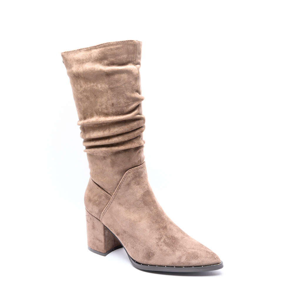 Γυναικείες μπότες της εταιρείας XTI με σούρα, κατασκευασμένες από ύφασμα με πολύ μαλακό πάτο για περισσότερη άνεση και διακοσμητικές λεπτομέρειες περιμετρικά. Διαθέτουν φερμουάρ για εύκολη εφαρμογή καθώς και μοντέρνο στρογγυλό τακούνι.