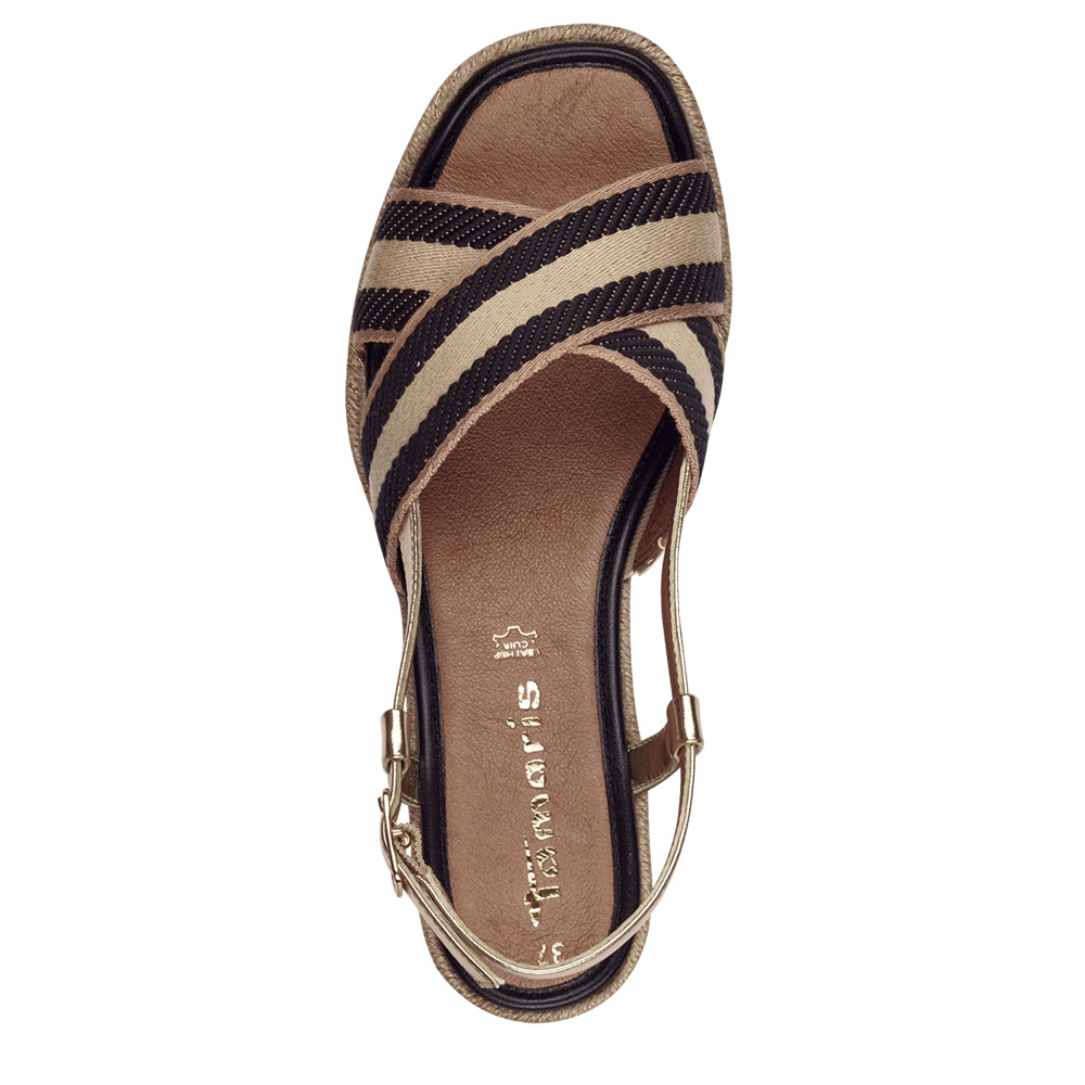 Γυναικείες πλατφόρμες της εταιρείας TAMARIS κατασκευασμένες από υφασμάτινο υλικό άριστης ποιότητας. Διαθέτουν ανατομικό δερμάτινο πάτο τεχνολογίας TOUCH IT χαρίζοντας παραπάνω άνεση και αντιολισθητική σόλα για σταθερά βήματα. Δένουν με λουράκι πίσω από τον αστράγαλο σε ένα κομψό και θηλυκό σχέδιο.