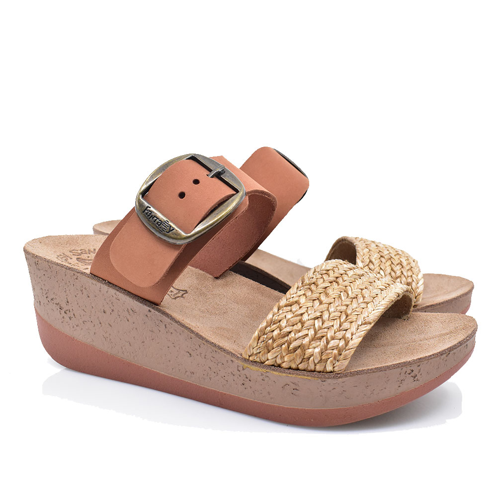 Γυναικείες πλατφόρμες ελληνικής προέλευσης της εταιρείας FANTASY SANDALS κατασκευασμένες από δέρμα άριστης ποιότητας. Χάρη στην ανατομική και αντικραδασμική τους σόλα θα προσφέρουν σιγουριά και προστασία σε κάθε σας βήμα όλο το καλοκαίρι, η αντιολισθητική τους σόλα υπόσχεται ασφάλεια. Διαθέτουν κούμπωμα με ντοκά στο επάνω μέρος.
