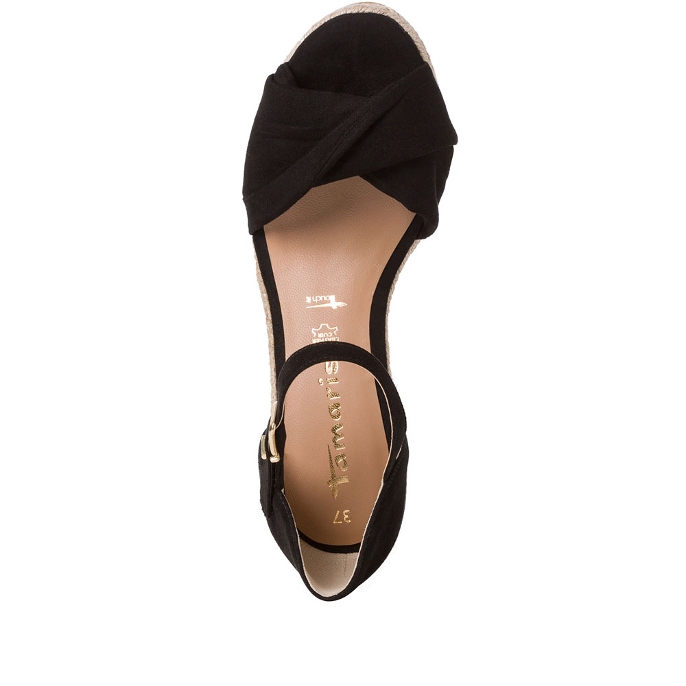 Γυναικείες πλατφόρμες της εταιρείας TAMARIS κατασκευασμένες από υφασμάτινο υλικό άριστης ποιότητας. Διαθέτουν ανατομικό δερμάτινο πάτο τεχνολογίας TOUCH IT χαρίζοντας παραπάνω άνεση και αντιολισθητική σόλα για σταθερά βήματα. Δένουν με λουράκι γύρω από τον αστράγαλο σε ένα κομψό και θηλυκό σχέδιο.