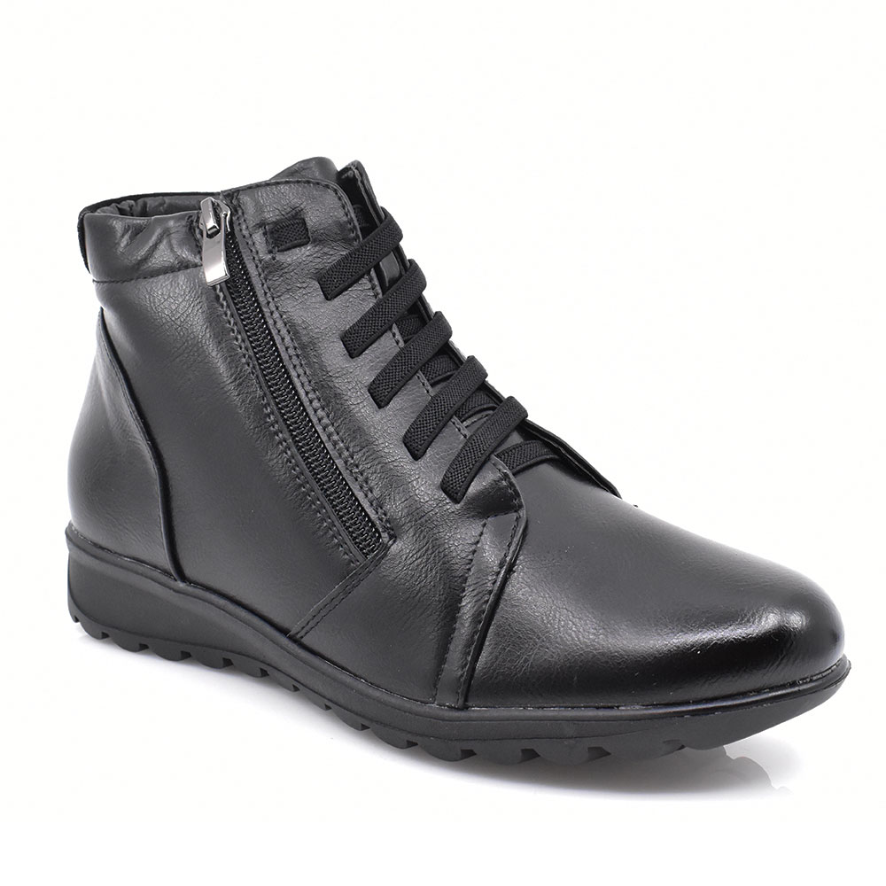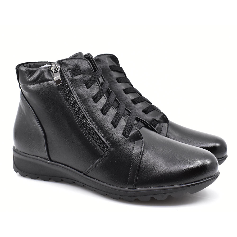 Γυναικεία μποτάκια flat για καθημερινή χρήση με φερμουάρ στο πλάι και ελαστικά κορδόνια για εύκολη εφαρμογή. Διαθέτουν μαλακό πάτο για άνετο βάδισμα.
