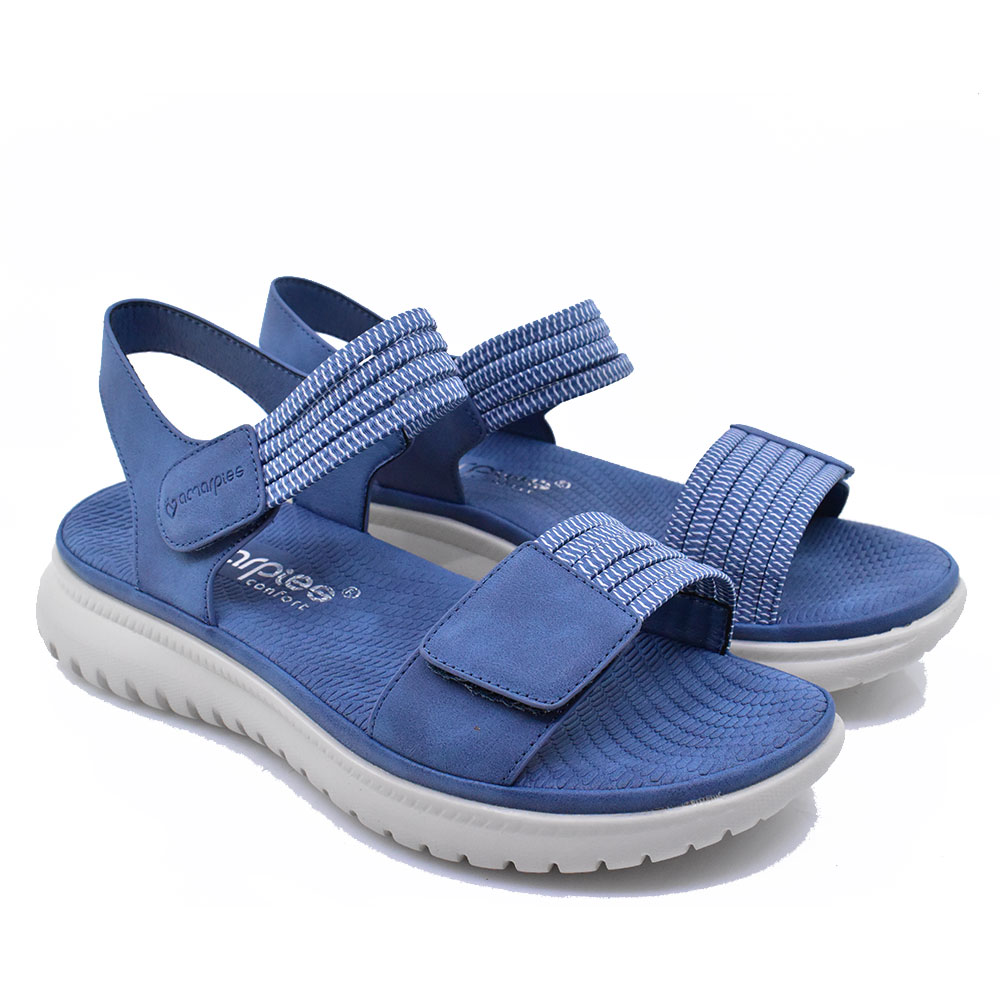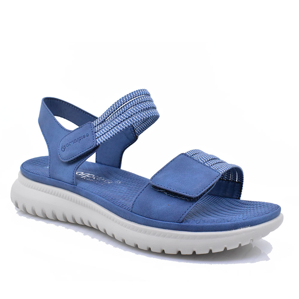 Γυναικεία πέδιλα κατασκευασμένα από συνθετικό υλικό με μαλακό πάτο για άνετο βάδισμα. Διαθέτουν αντιολισθητική σόλα για ασφάλεια και αποφυγή κραδασμών, με αυτοκόλλητη ταινία velcro στο επάνω μέρος. Ελαφρύ υπόδημα ιδανικό για καθημερινή χρήση.