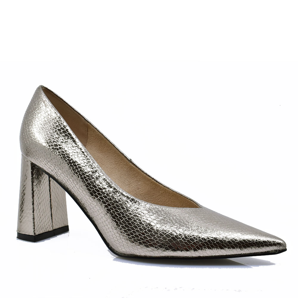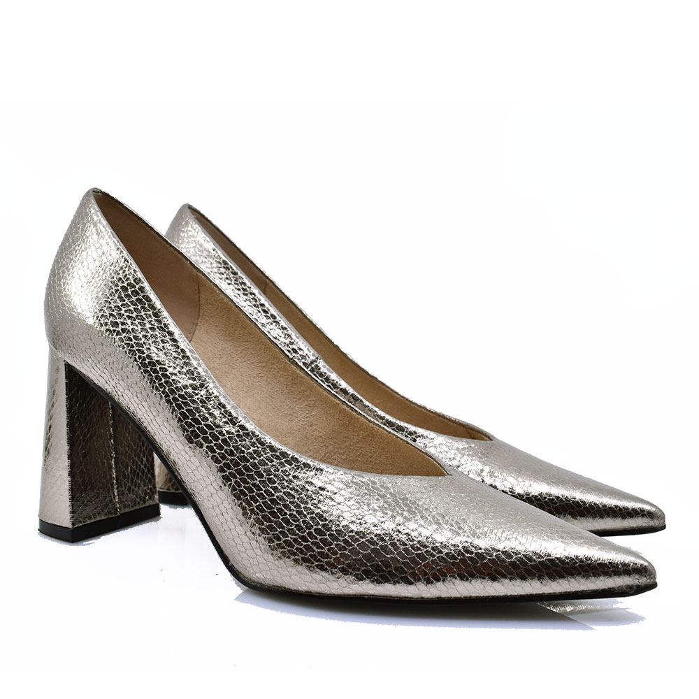 Γυναικείες γόβες κατασκευασμένες από συνθετικό υλικό σε ένα εντυπωσιακό animal print σχέδιο. Ιδιαίτερο θηλυκό χοντρό τακούνι, ύψους 9cm, ιδανικό για τις βραδινές σας εξορμήσεις.