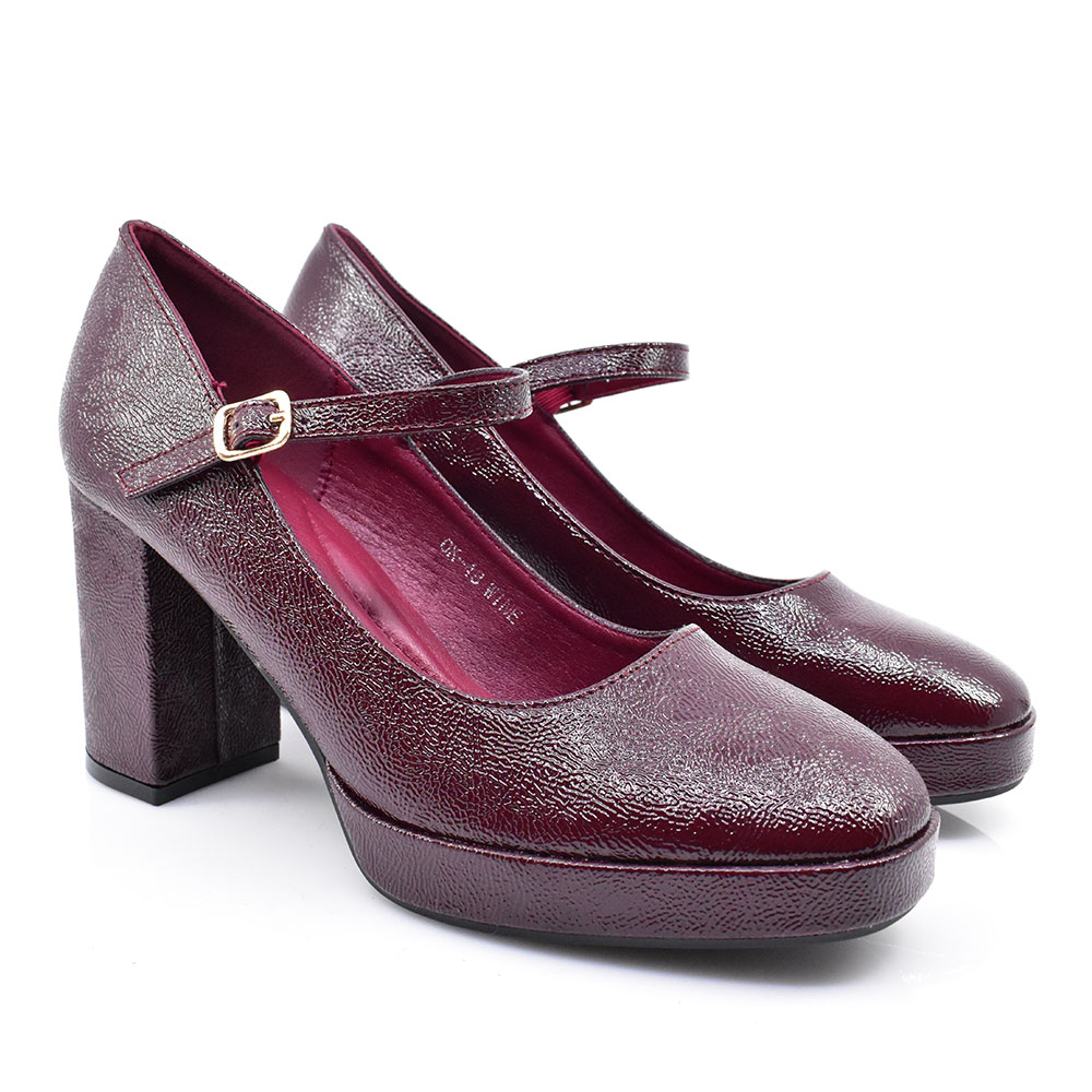 Γυναικείες γόβες με μπαρέτα κατασκευασμένες από συνθετικό υλικό με μαλακό πατάκι και χοντρό τετράγωνο τακούνι για άνετο βάδισμα όλες τις όλες της ημέρας.