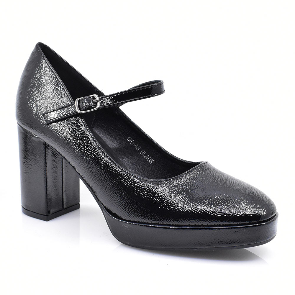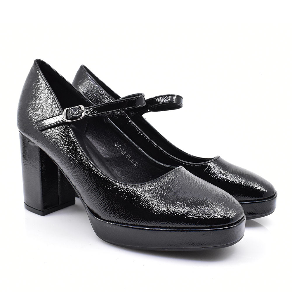 Γυναικείες γόβες με μπαρέτα κατασκευασμένες από συνθετικό υλικό με μαλακό πατάκι και χοντρό τετράγωνο τακούνι για άνετο βάδισμα όλες τις όλες της ημέρας.
