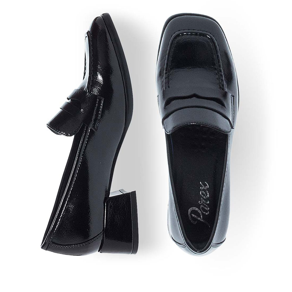 Γυναικείες γόβες της εταιρείας PAREX κατασκευασμένες από συνθετικό υλικό σε λούστρινη επιφάνεια. Διαθέτουν μαλακό δερμάτινο πάτο για άνετο βάδισμα καθώς και αντιολισθητική σόλα.