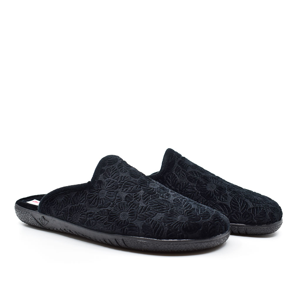 Γυναικείες παντόφλες της ισπανικής εταιρείας ADAMS με ζεστή επένδυση από ύφασμα βελούδο και αντιολισθητική σόλα για σταθερότητα και άνεση.